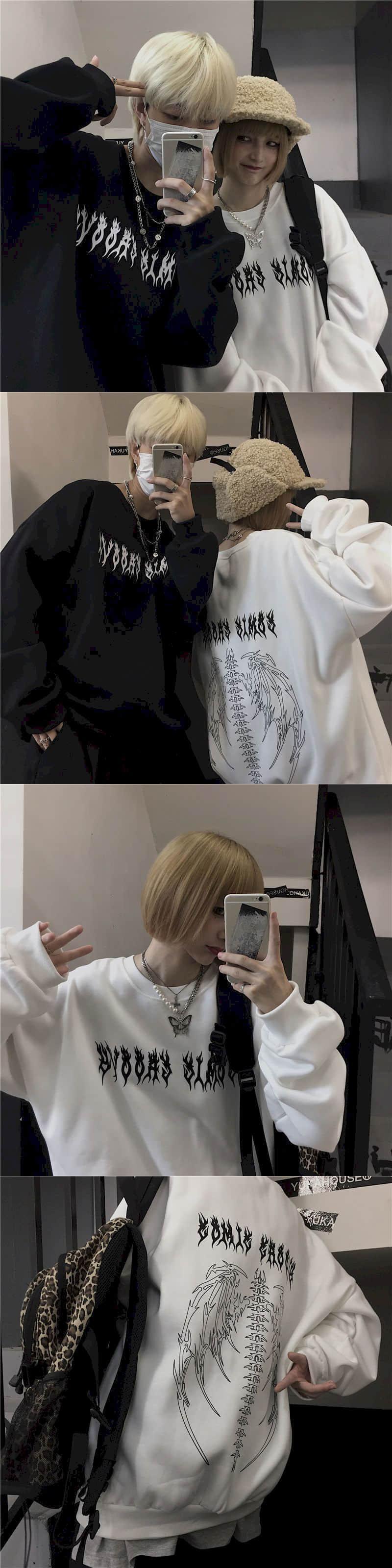 特大クルーネックスウェットシャツダーク BF スウェットシャツ女性パーカーカップル緩いトレンド印刷ミッドレングストップス服 got64574024942
