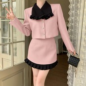 スウィートガール春スーツ女性のフリル長袖コートウエスト A ラインショートスカート 2 点セット服 ロング 大人ガーリー キュート カジュアル スプリング 春物 Aライン got3961933805