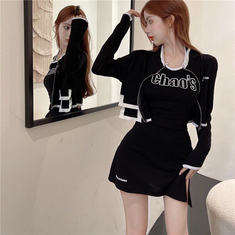 スポーツ ツーピース ドレス ツーピース女性秋の純粋な欲望ホルター ドレス長袖カーディガン クロップ コート ロング オータム 秋物 ピュア got47277677343