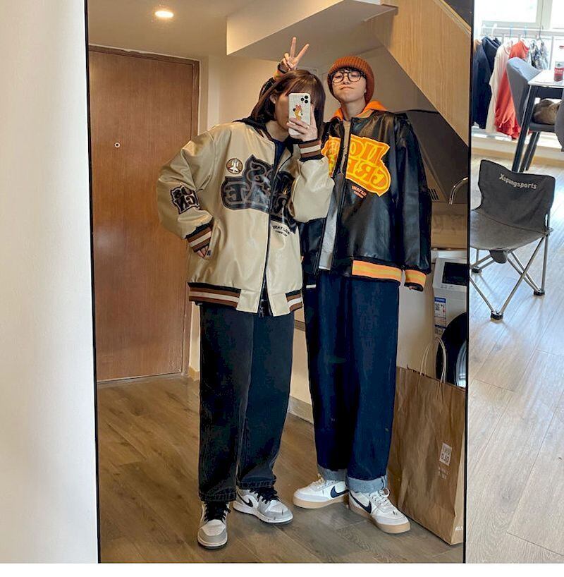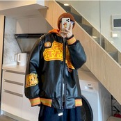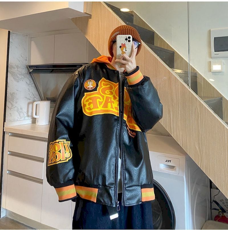 Pu レザージャケットオートバイ男性女性ウインドブレーカーフード付きステッチ野球コート春秋ルース BF トレンドストリートトップス スプリング 春物 オータム 秋物 got42765440532