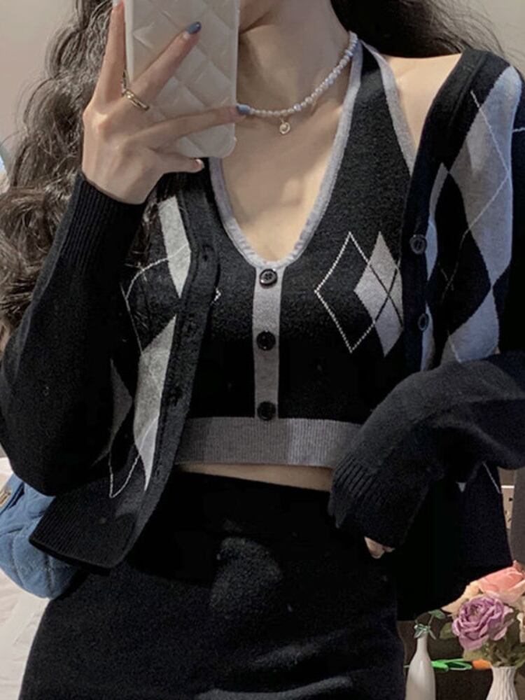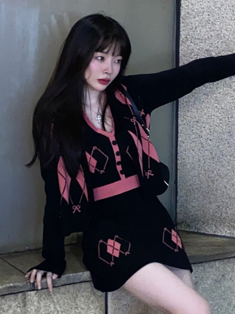 スリーピース女性ニットカーディガン + クロップトップ + スカート春セーターショートスキニー Y2k ストリートセクシースーツ スプリング 春物 got11230340359
