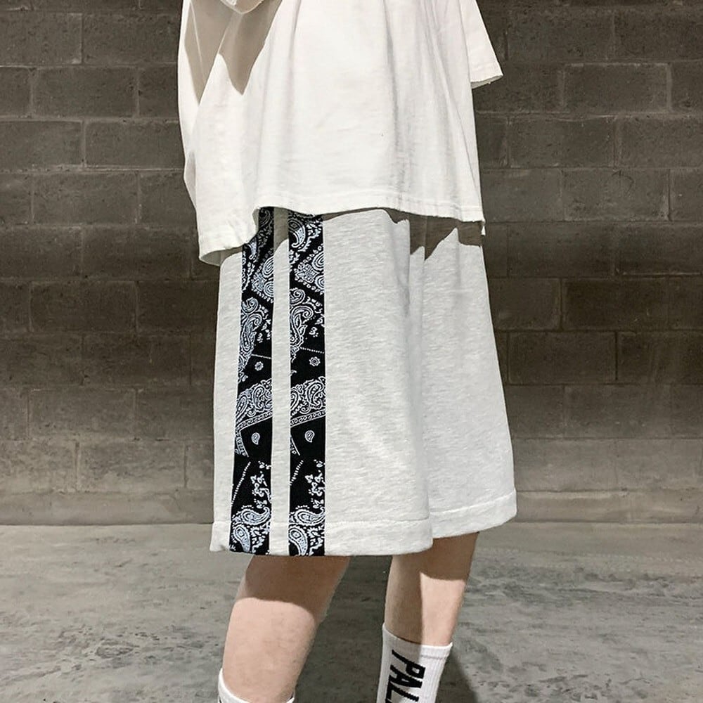 男性ショートパンツバスケットボールショーツワイド脚パンツ夏スウェットパンツジムショーツカシュー花プリント男性ボトムスフィットネス サマー 夏物 ブルマー ワイドレッグ ワイドパンツ フラワーデザイン got83551515958