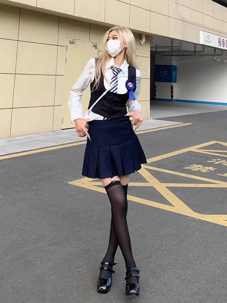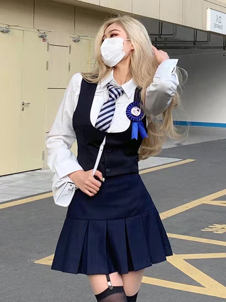 Gothiscyn 3 ピース女性スーツ学校アメリカン レトロ ホット ガール セクシー スーツ プレッピー JK ベスト シャツ プリーツ スカート春 スプリング 春物 got59493271866