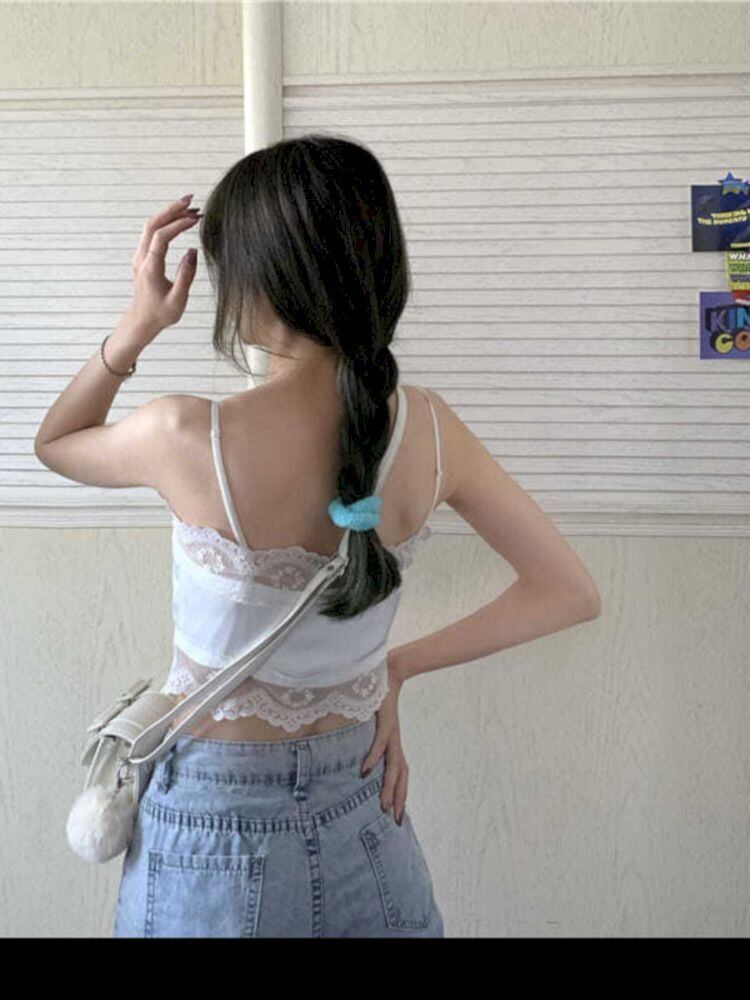 Y2k トップス女性シングルブレストニットキャミソール夏上着フレンチホワイトレースショートホットガールクロップトップスボタン サマー 夏物 got6038021920