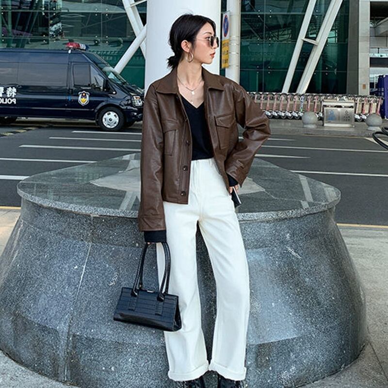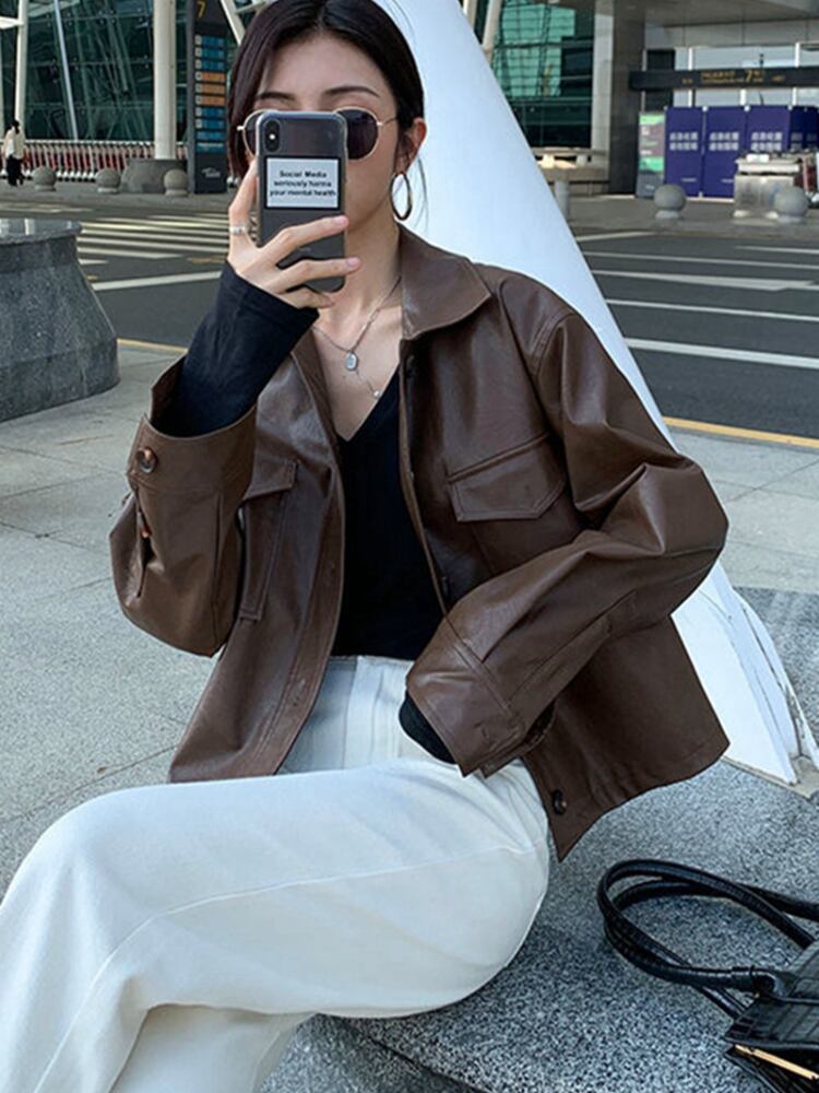 Gothiscyn PU レザージャケット女性ブラウンコート春秋のウインドブレーカー女性の上着コート スプリング 春物 オータム 秋物 got74153580316