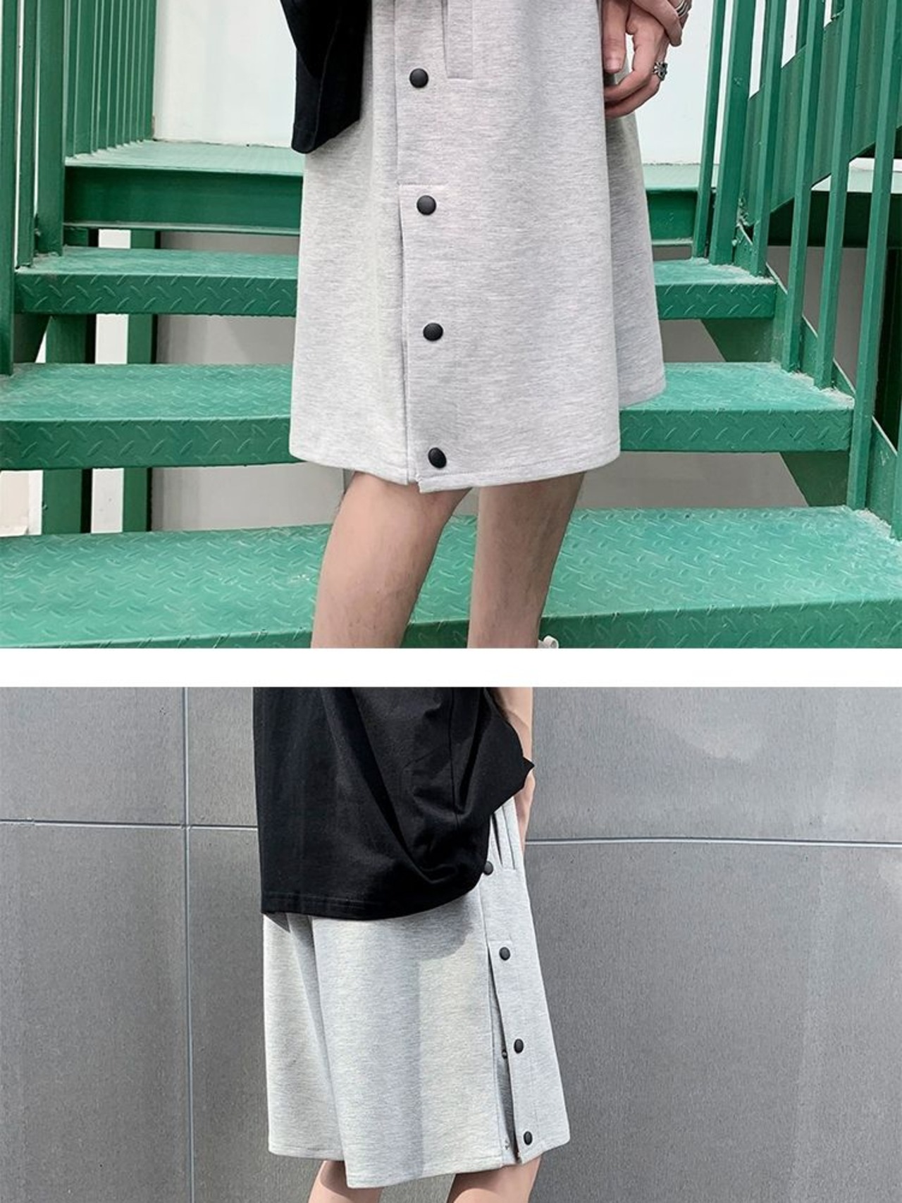 バスケットボールショーツ男性パンツ夏ジムショート黒ボタンアップワイドレッグだぶだぶパンツヒップホップパンク男性ボトムスストリート ブラック サマー 夏物 ブルマー ワイドパンツ got31369535680