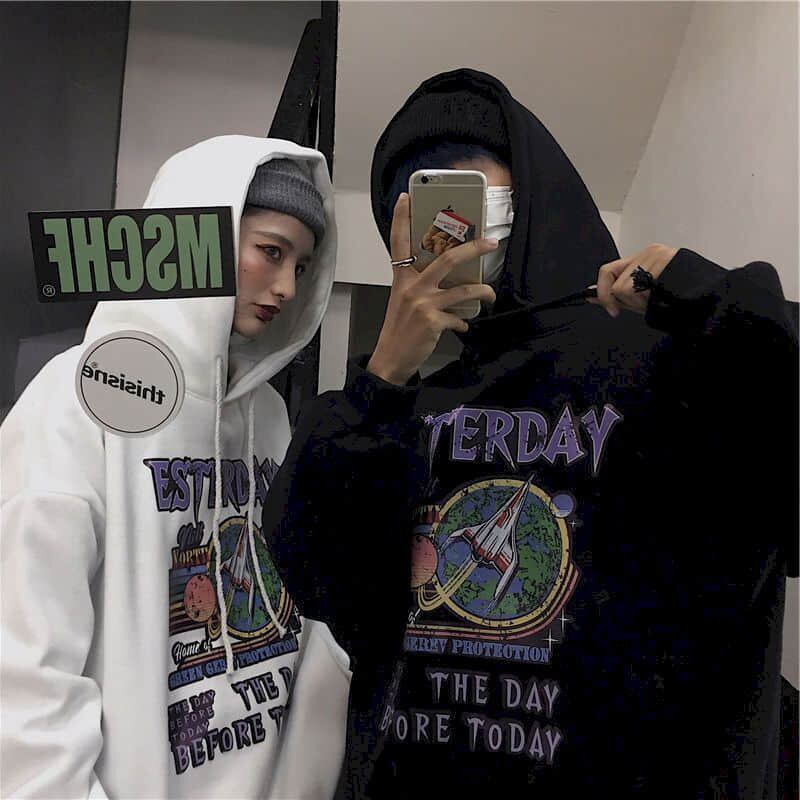 秋/冬パーカー女性 Sweatshrit 原宿スタイルレトロロケットレター印刷ルーズフード付きジャケットパンクゴス服 かわいい オータム 秋物 ウィンター 冬物 got71869470119