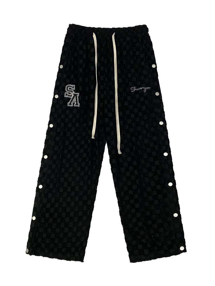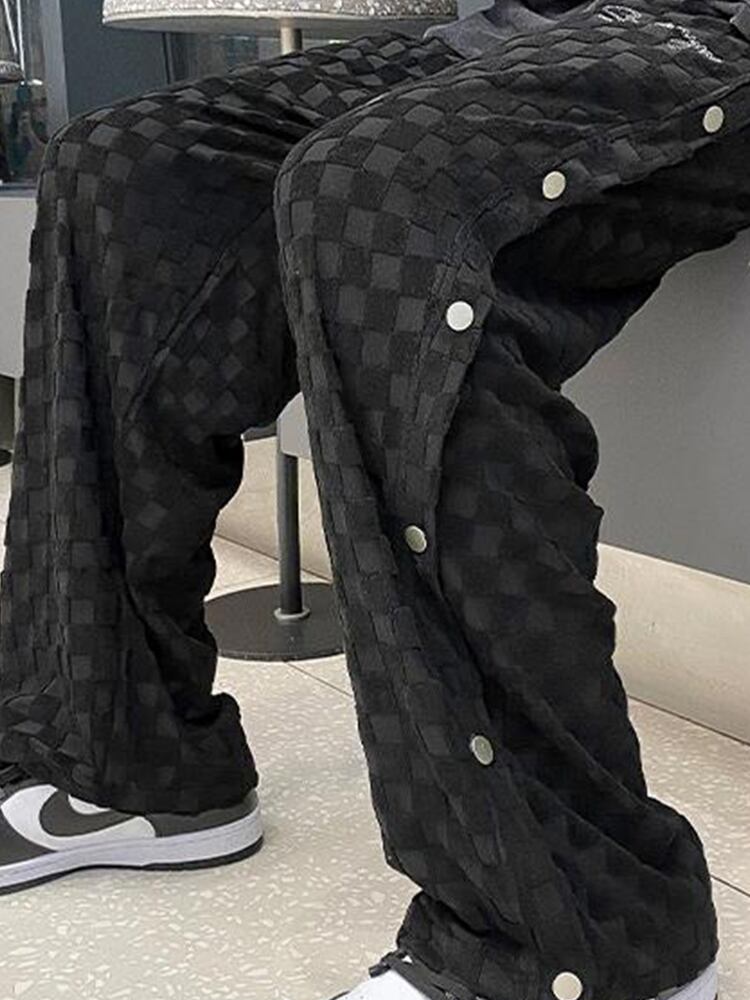 男性パンツボタンアップサイドワイド脚パンツ黒カーゴストレートズボンだぶだぶボトムスウエストヒップホップユニセックス服 ブラック ワイドレッグ ワイドパンツ got4362574625