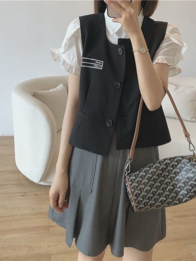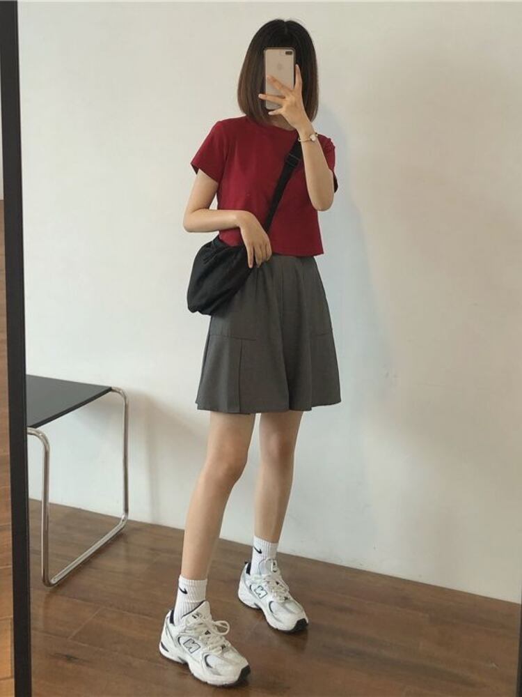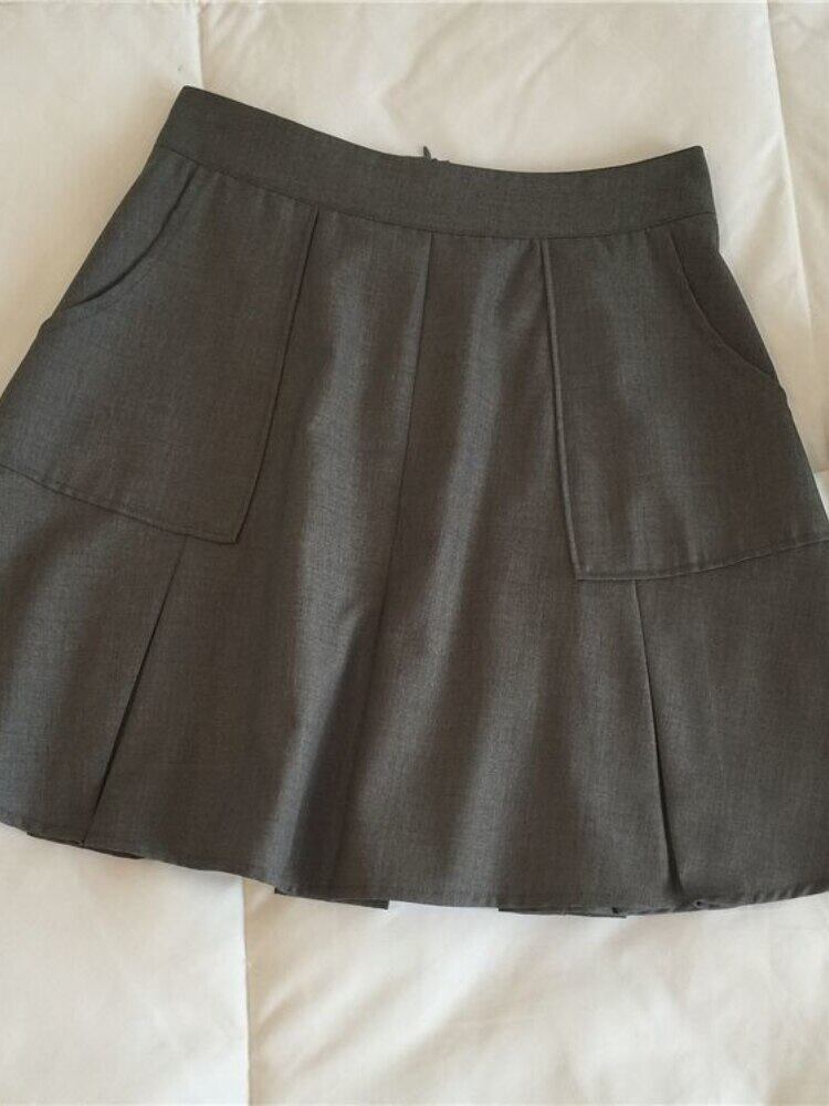 夏の女性のスカートグレーウエストダブルパッチポケットスリットプリーツスカート A ラインショートスカートスタイルの女性ボトム サマー 夏物 Aライン got78660604824