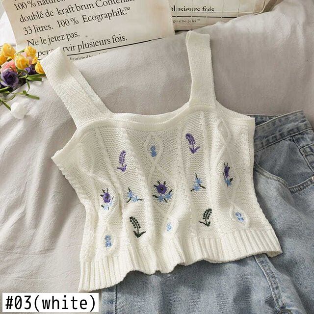 タンクトップ女性ニットベスト夏短クロップへそ刺繍ニットキャミソールオールマッチかわいいスリング レッド 大人ガーリー スウィート キュート カジュアル サマー 夏物 got78114118896