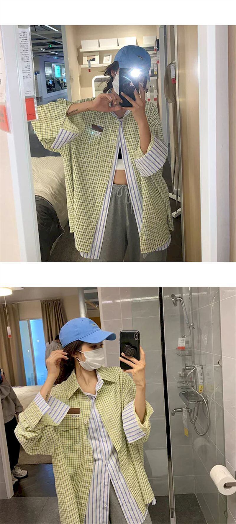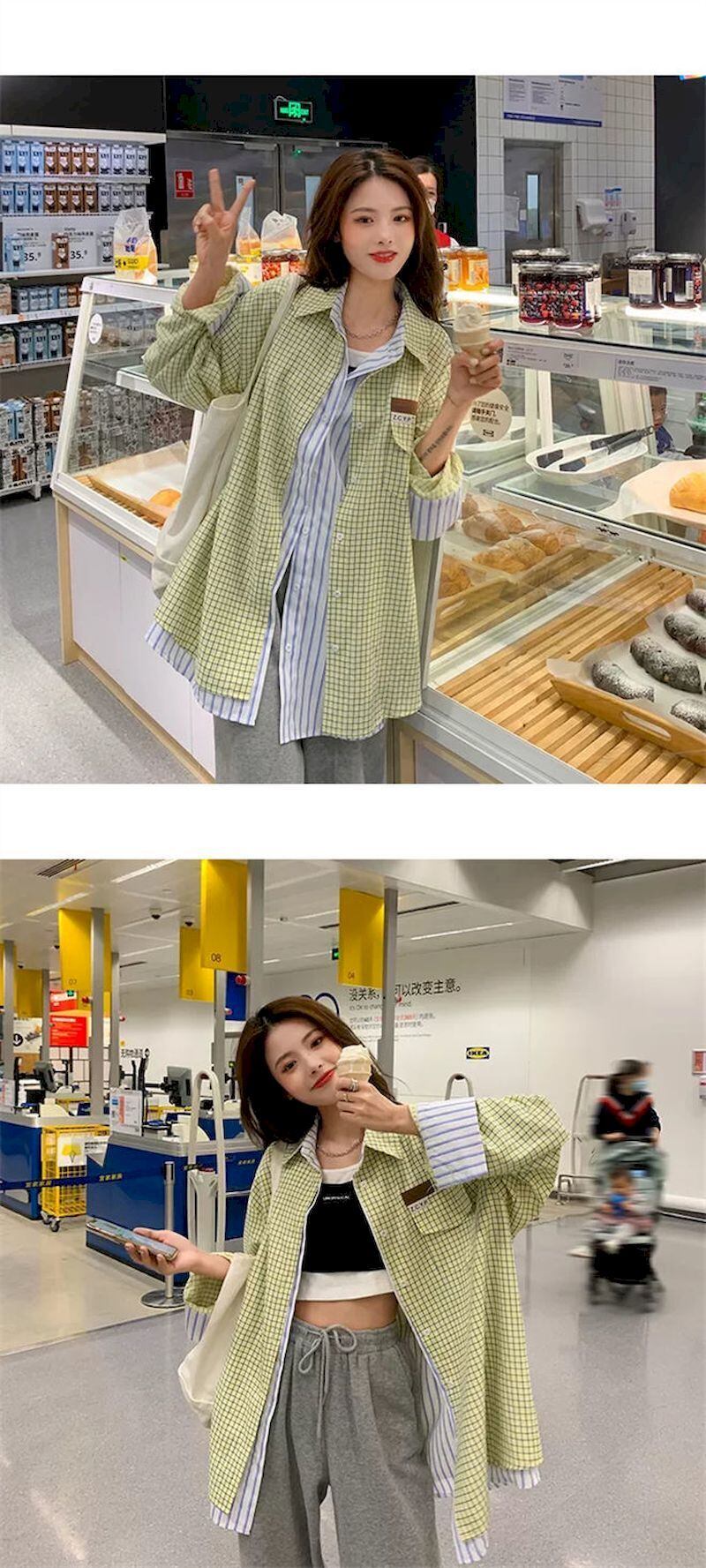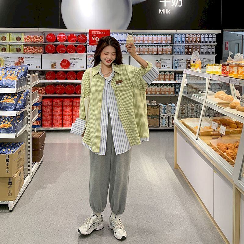プレッピースタイルチェック柄シャツ女性長袖ブラウス特大黄色春秋の女性の夏 ese シックなブラウス ロング スプリング 春物 サマー 夏物 オータム 秋物 got76272459579