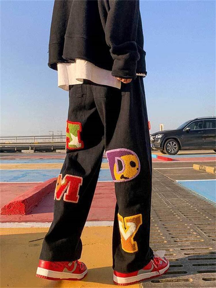 ゴシックパンクパンツ黒ワイドレッグデニムストレートズボンだぶだぶカーゴパンツ ese ストリート男性ストリートボトムス ブラック ワイドパンツ got73652151585