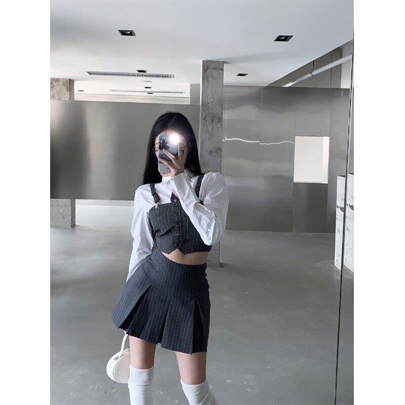 秋と冬の甘いホット女の子アメリカン スタイル スーツ ベスト長袖シャツ ネクタイ ショート スカート 3 ピース スーツ ロング 大人ガーリー スウィート キュート カジュアル オータム 秋物 ウィンター 冬物 got96446137512