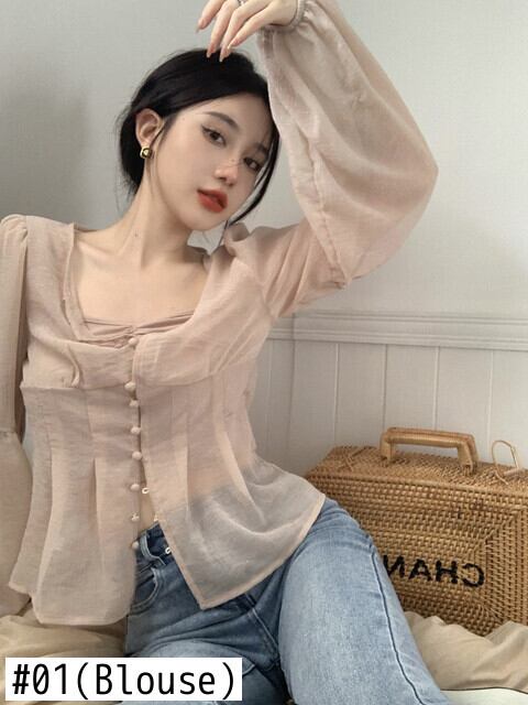 GothiscynレトロパフスリーブVネックシャツレディースブラウス夏スキニーウエストショートロングスリーブトップオフィスレディブラウス 長袖 サマー 夏物 会社 学校 通勤や通学にも got7730318219