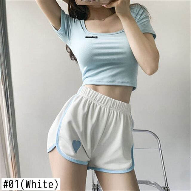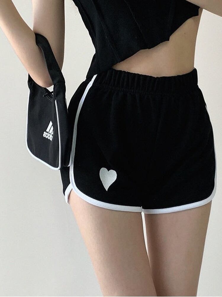 スウェットショーツ女性ボトムグランジセクシーショーツウエスト刺繍ハート夏ショートパンツブルーワークアウトパンツ サマー 夏物 ブルマー got88177075571