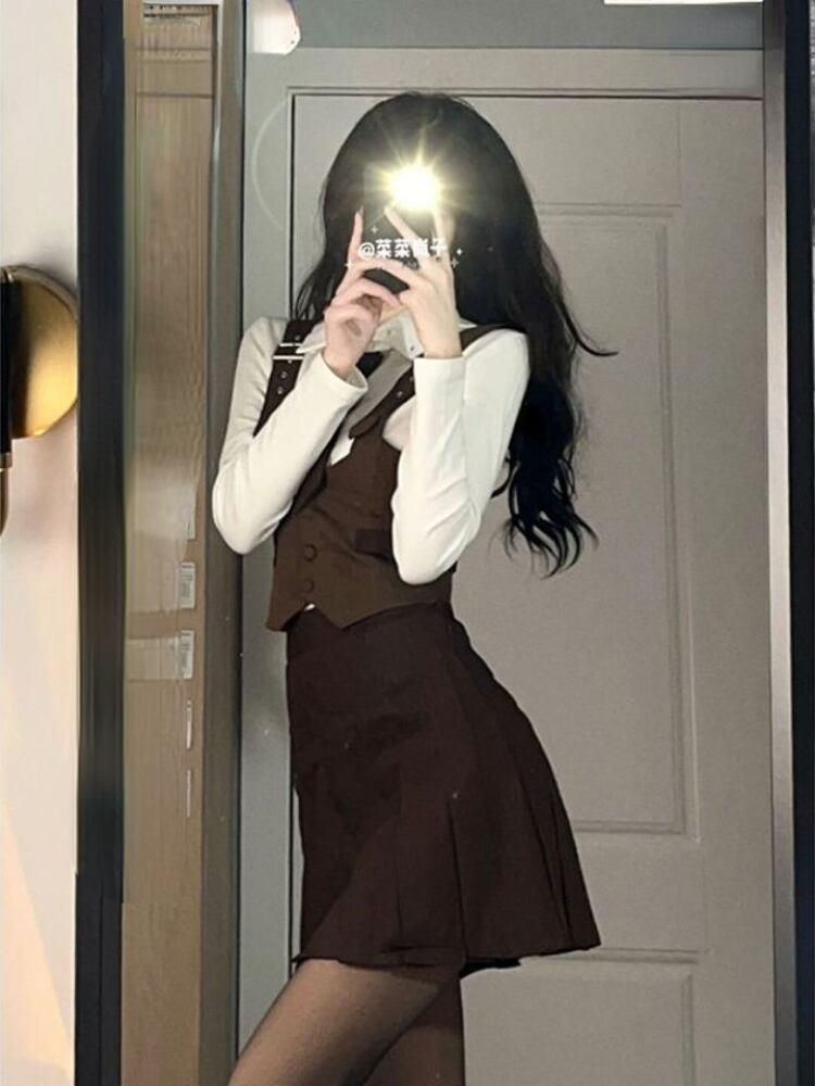 Gothiscyn プレッピー スタイル スリーピース スーツ キャンパス ショート ベスト + 長袖シャツ + A ライン スカート春秋スーツ ロング スプリング 春物 オータム 秋物 Aライン got72849289301