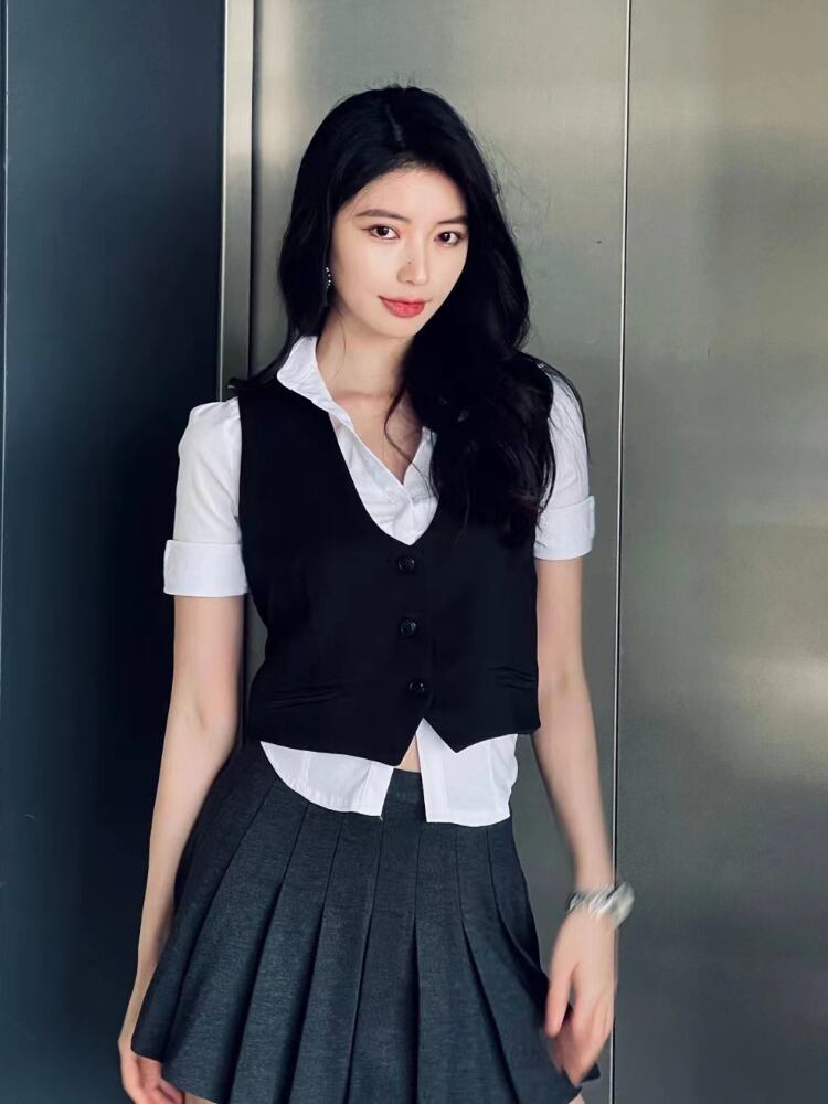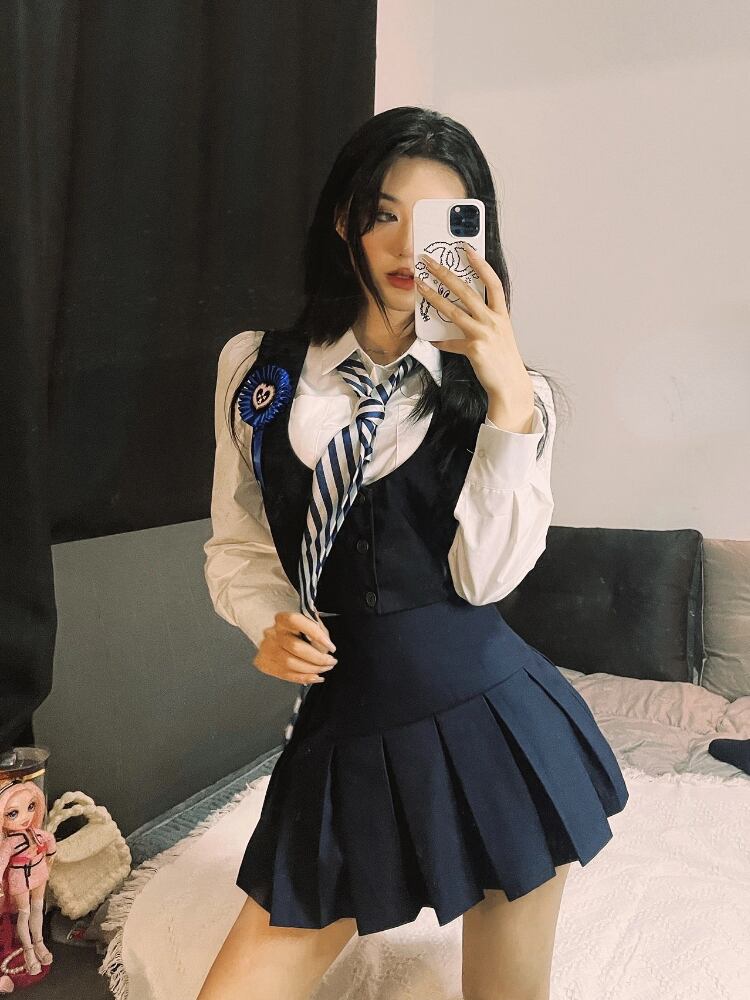 Gothiscyn ホット ガール スーツ JK ブラック ベスト 半袖 シャツ スカート セクシー スーツ 3点セット Y2k E ガール ショート ハーフスリーブ got63365062175