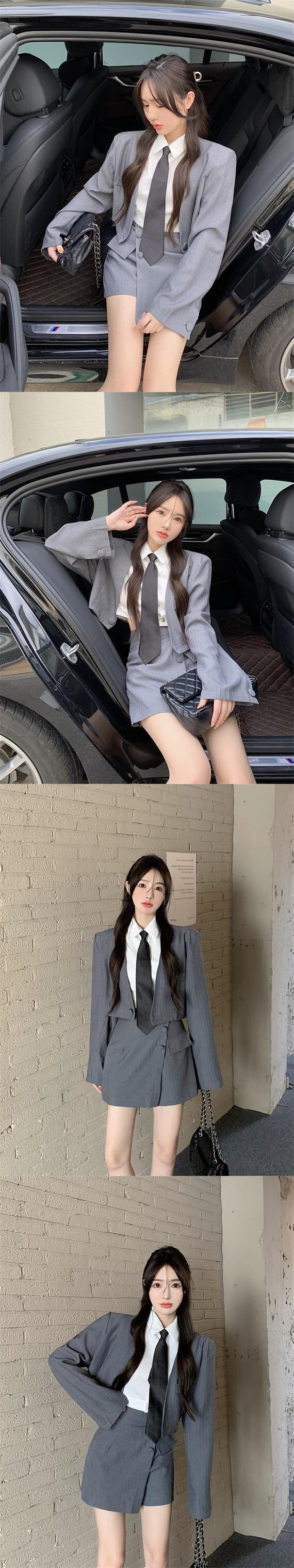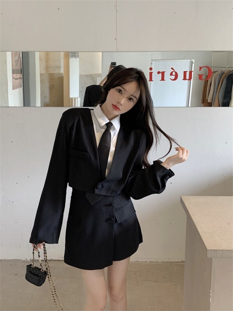 シックでシンプルなスーツ レディース ショートスーツ コート ウエストスプリット お尻 万能 スカート ショーツ 2点セット 洋服 ブルマー got70267082060