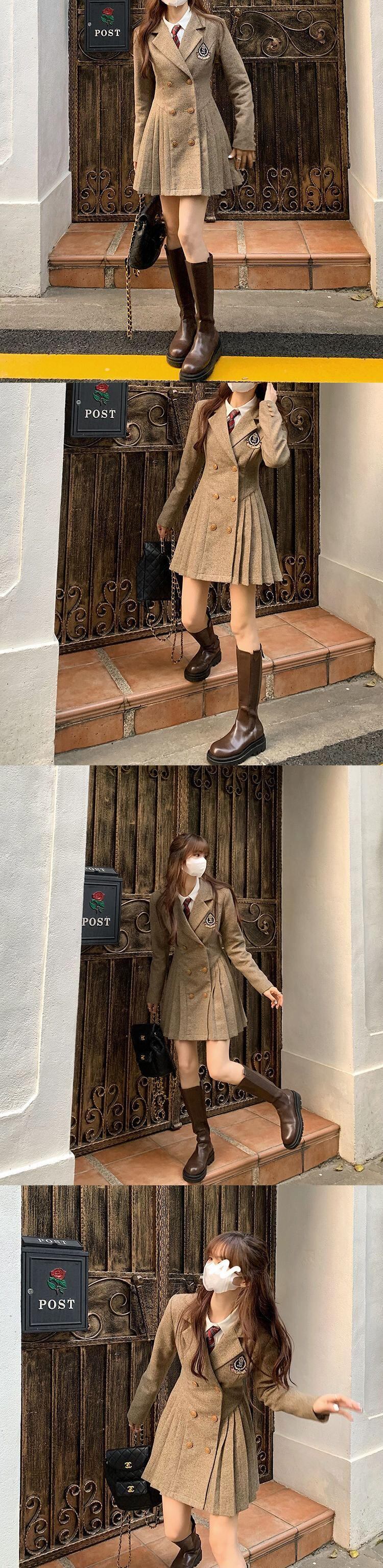 Gothiscyn ドレス女性スリムフィットプリーツレディースホットガールズスタイル無地ドレス秋/冬のプレッピー服 オータム 秋物 ウィンター 冬物 ソリッドカラー got9237624987