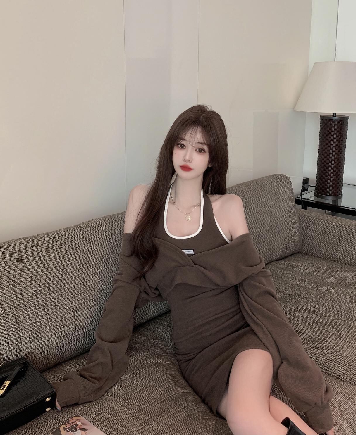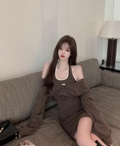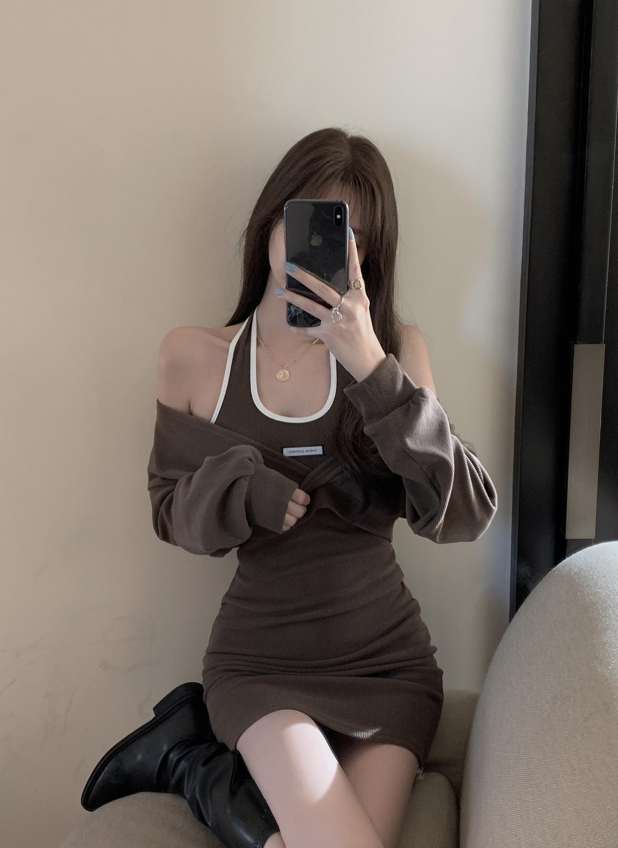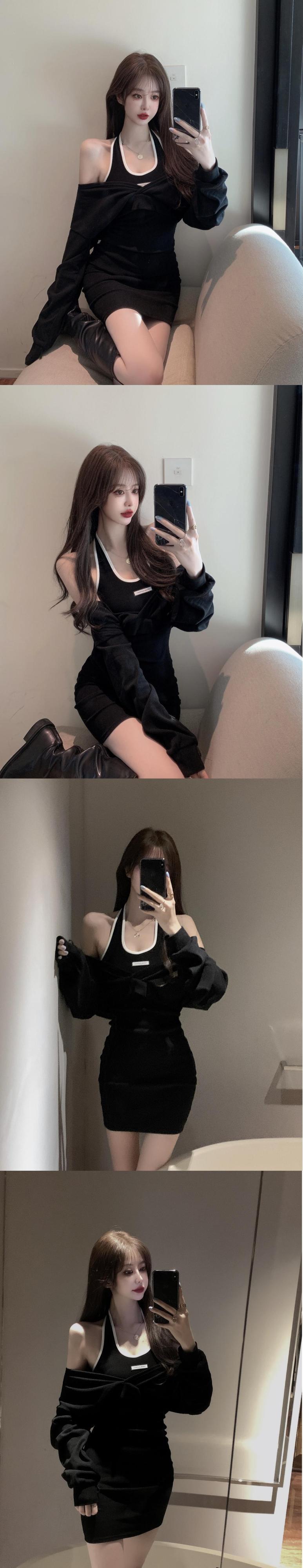 Gothiscyn ピュア ラスト ホット ガール セクシー ホルター ベスト ボトムス ドレス + ブラウス レイヤード トップ 2点セット スーツ シック レッド got7211390458