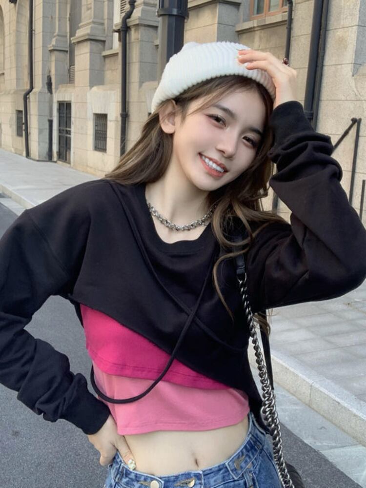 2 個タンククロッププルオーバー長袖セクシーなピンクのベスト Y2k スキニーステッチ夏の女性の服のスーツ ロング サマー 夏物 got22728816198
