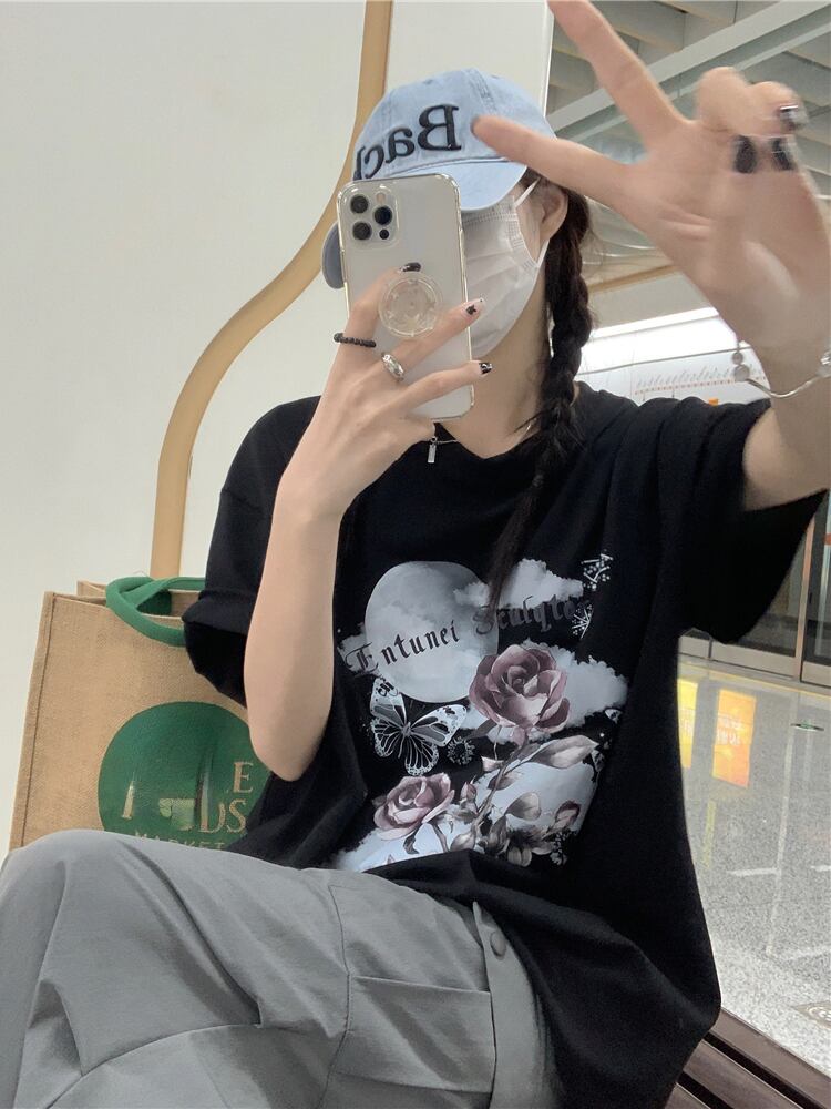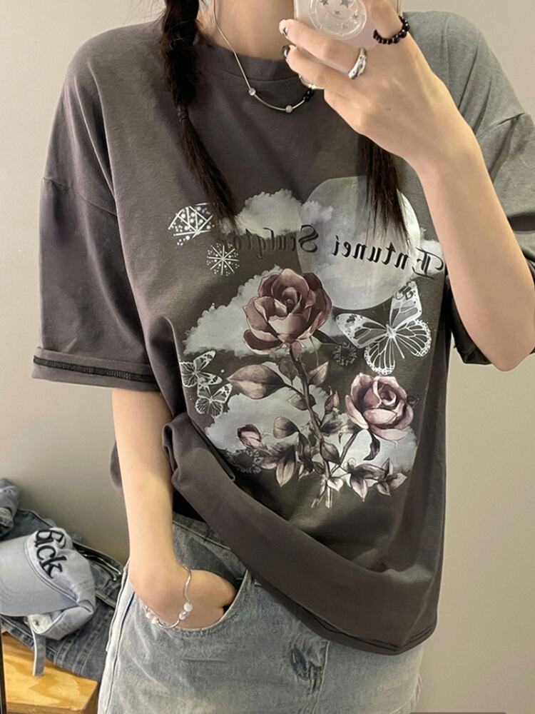 Gothiscyn 女性 Tシャツ半袖特大 Tシャツゴスシャツ Y2k E 美的服夏 Tシャツ ショート ハーフスリーブ サマー 夏物 got40896880653