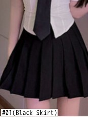 Gothiscyn 女性スーツ白シャツ黒プリーツ スカート 2 点セット JK 夏無地プレッピー スタイル スーツ ホワイト ブラック サマー 夏物 ソリッドカラー got87352327322