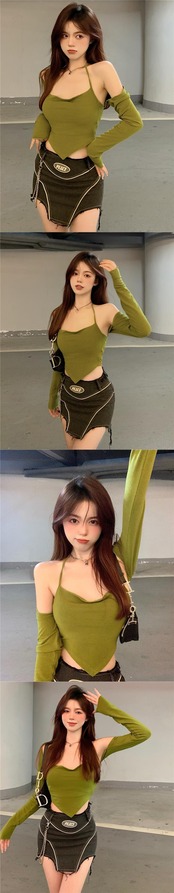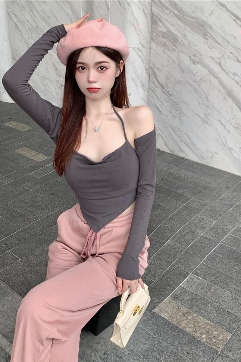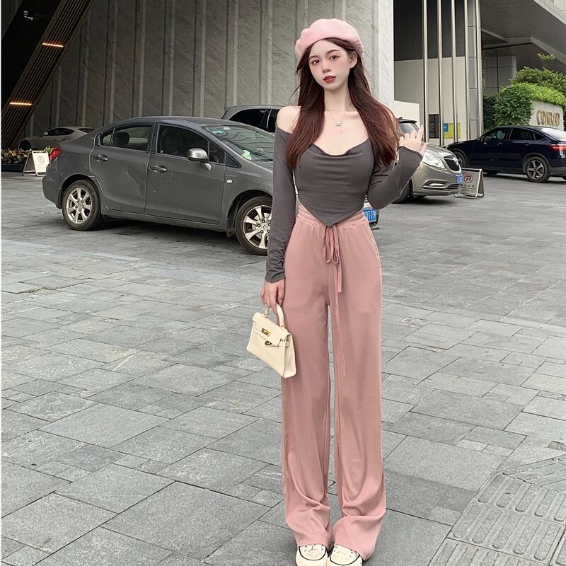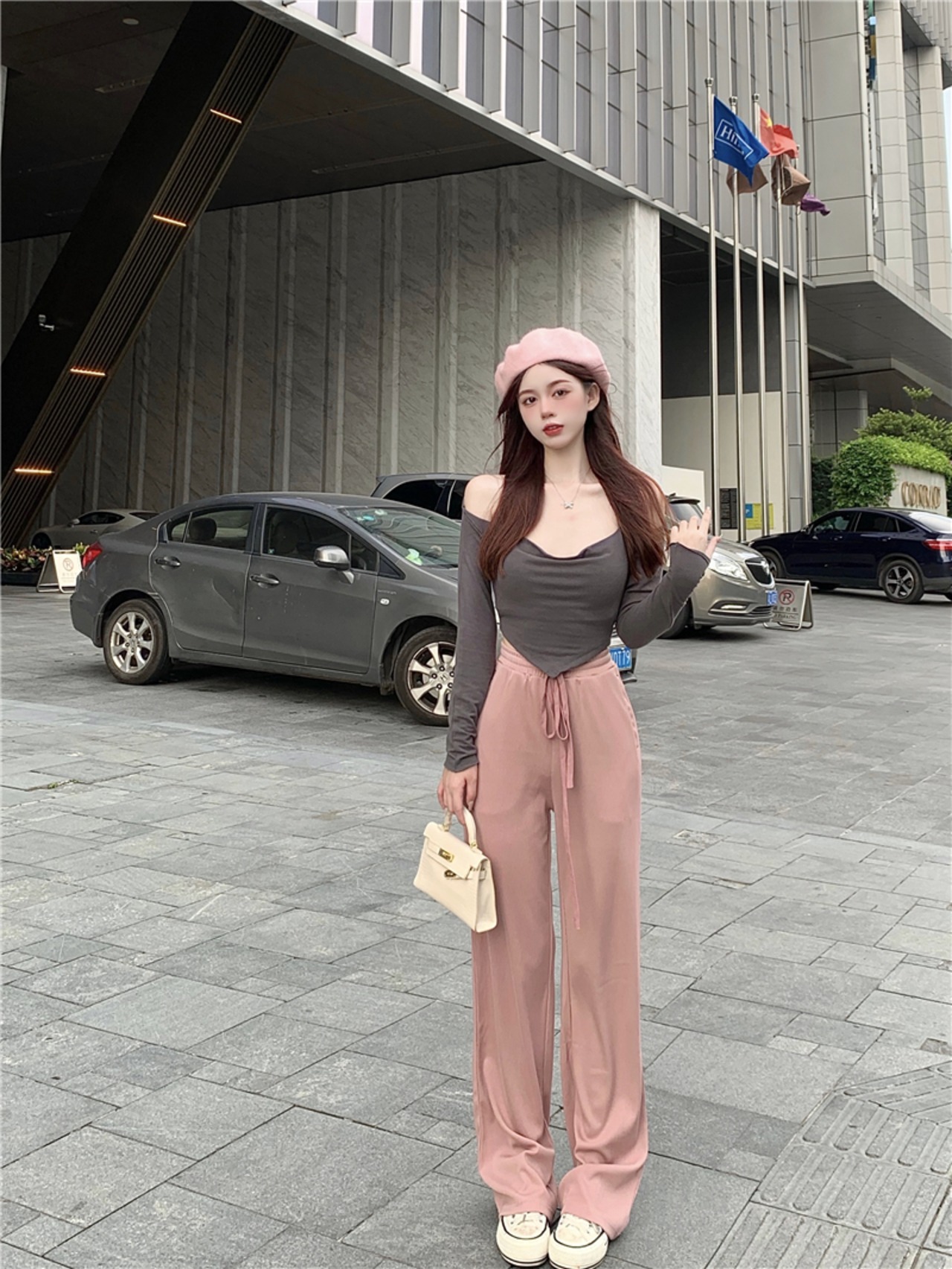 スーツ レディース スモール サスペンダー ベスト 長袖 ブラウス ウエスト スリム ストレート チューブ ロングパンツ 2点セット got59476772063