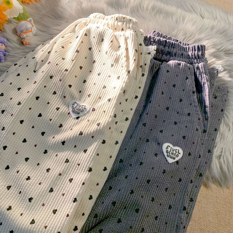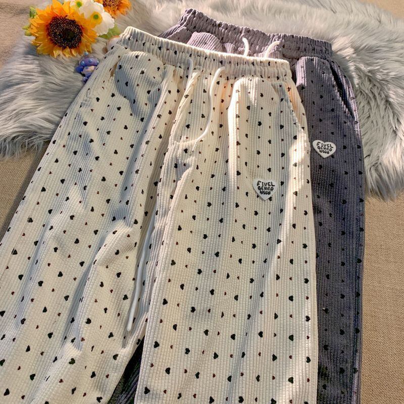愛斑点ワイドレッグパンツ女性春秋のウエストトレンドコーデュロイストレートズボン多彩なボトムス スプリング 春物 オータム 秋物 got84214345302