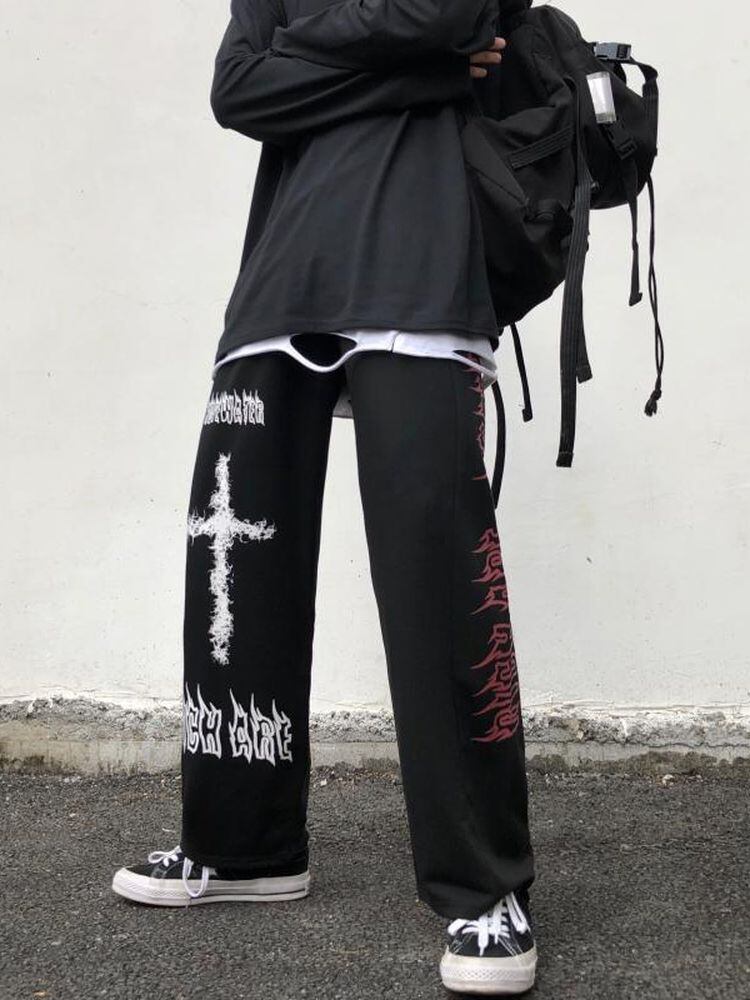 カジュアル パンツ男性夏新ゆるい ストレート ライトニング プリント ヴィンテージ スウェット パンツ ハイ ストリート男性の ズボン サイズの男性服 サマー 夏物 ビンテージ got66015468185