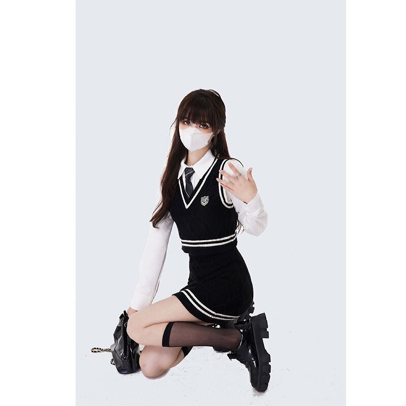スタイルスーツ女性の秋の V ネックニットベスト臀部スカート長袖シャツ 3 点セット服 ロング オータム 秋物 Vネック got46745005414