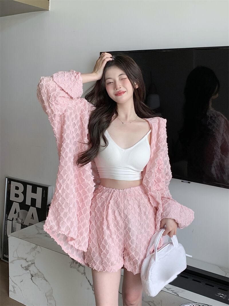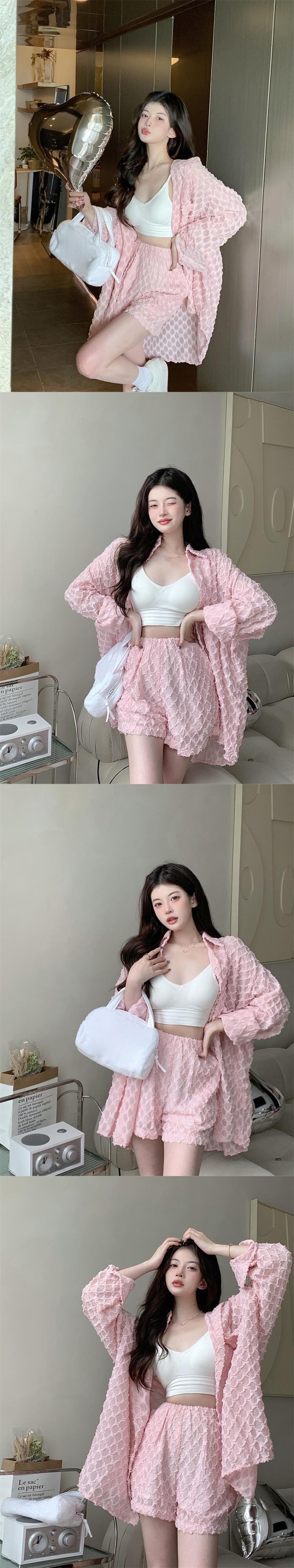 色:01(白いブラウス),02(ピンクのブラウス),03(ピンクのショートパンツ),04(ホワイトショーツ)