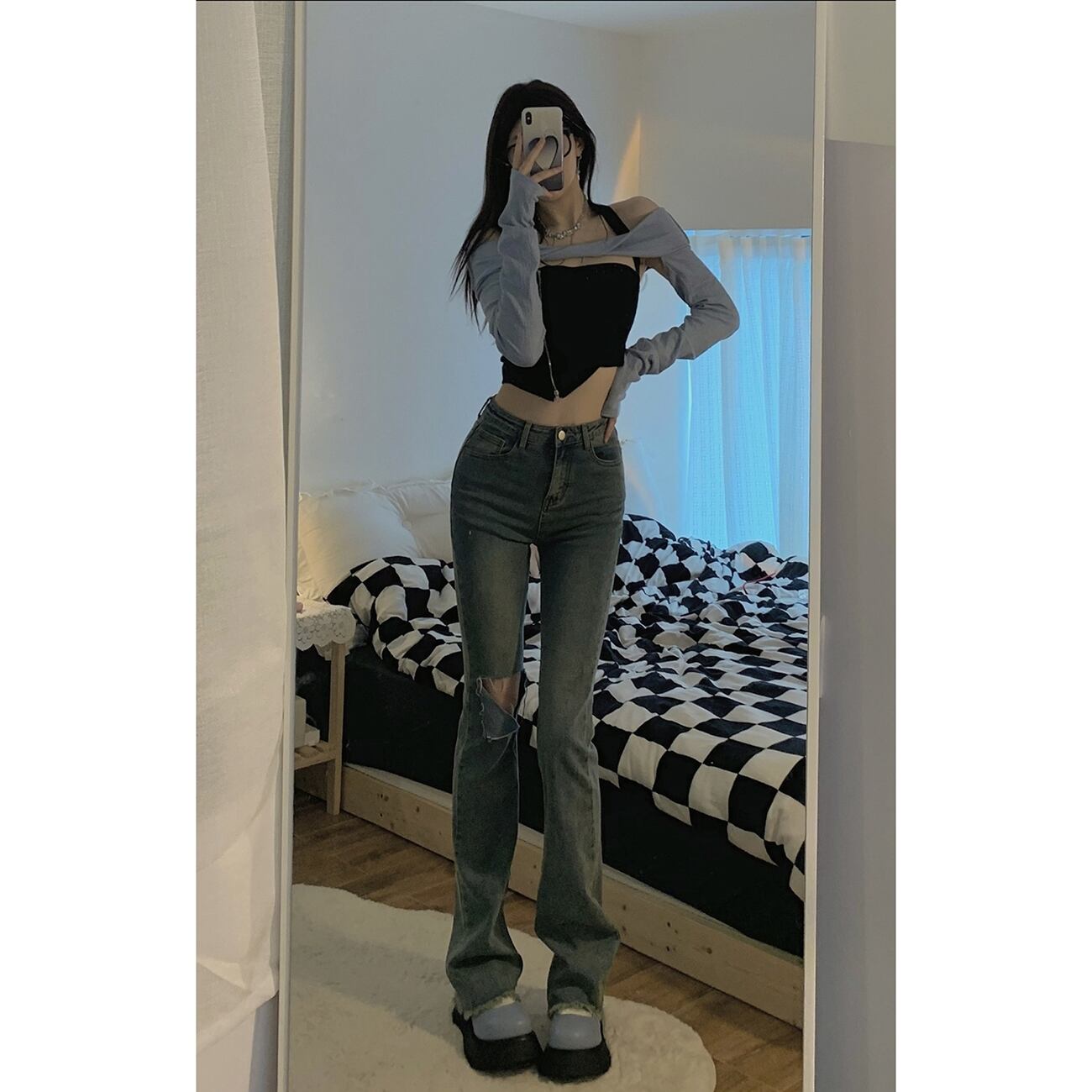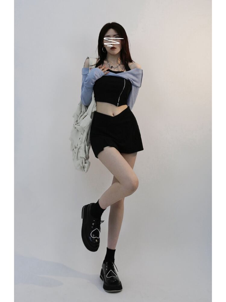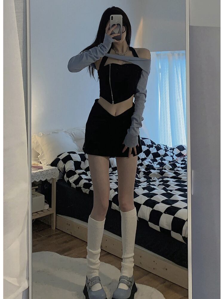 Gothiscyn スーツ長袖オフショルダーホルタートップ A ラインショートスカート 2 点セットホットガール女性スーツ春 ロング スプリング 春物 Aライン got73924989579