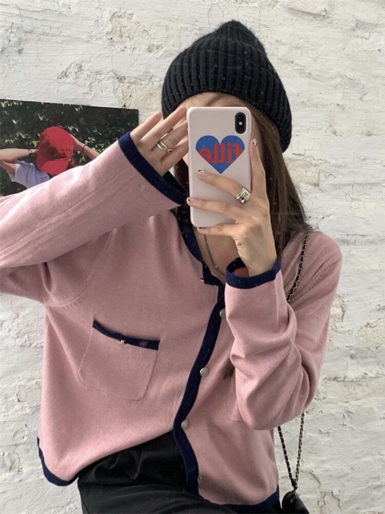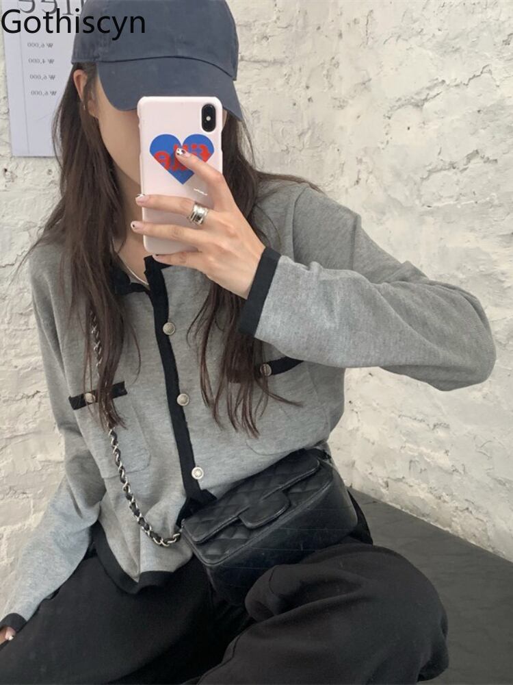 グレー長袖ニットカーディガン女性早春ゆるいショートセータージャケット甘い優しい風トップ ロング 大人ガーリー スウィート キュート カジュアル スプリング 春物 got45450493417