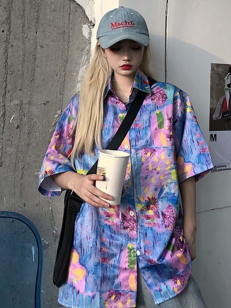 夏の女性シャツ特大半袖ブラウス塗装トップシャツストリートストリートゴスパンク服 ショート ハーフスリーブ サマー 夏物 got25724350429