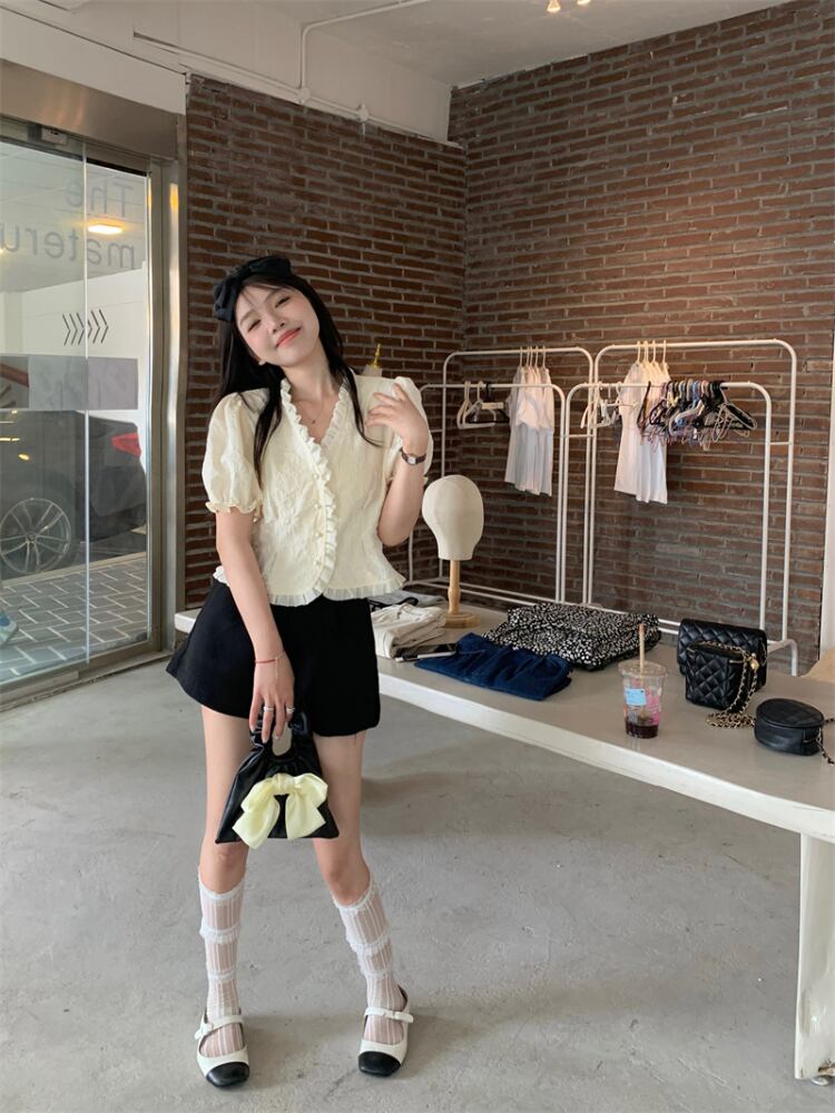 Gothiscyn カーディガン シャツ パフスリーブ Vネック 花柄ブラウス 夏 菌縁 半袖 トップス シック サマー 夏物 got11878197301