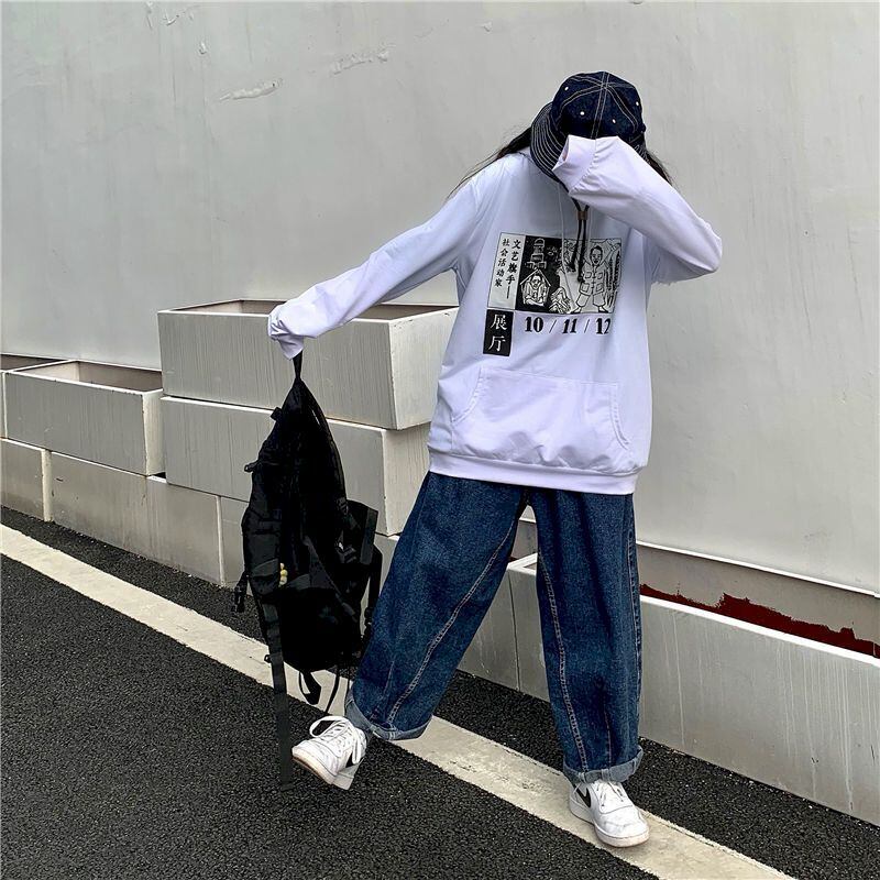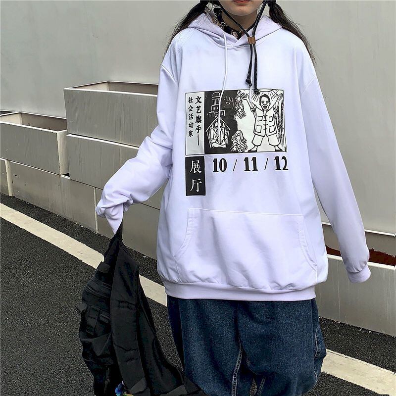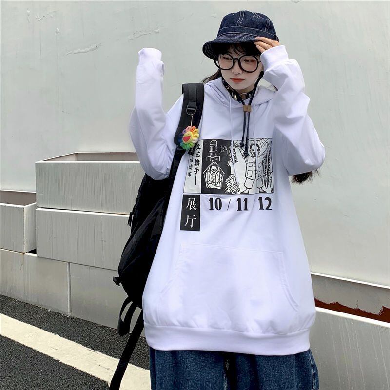 パーカー女性トレーナー漫画アニメプリントフード付きルーズ長袖セータージャケット潮薄い学生香港スタイル ロング got24062951954