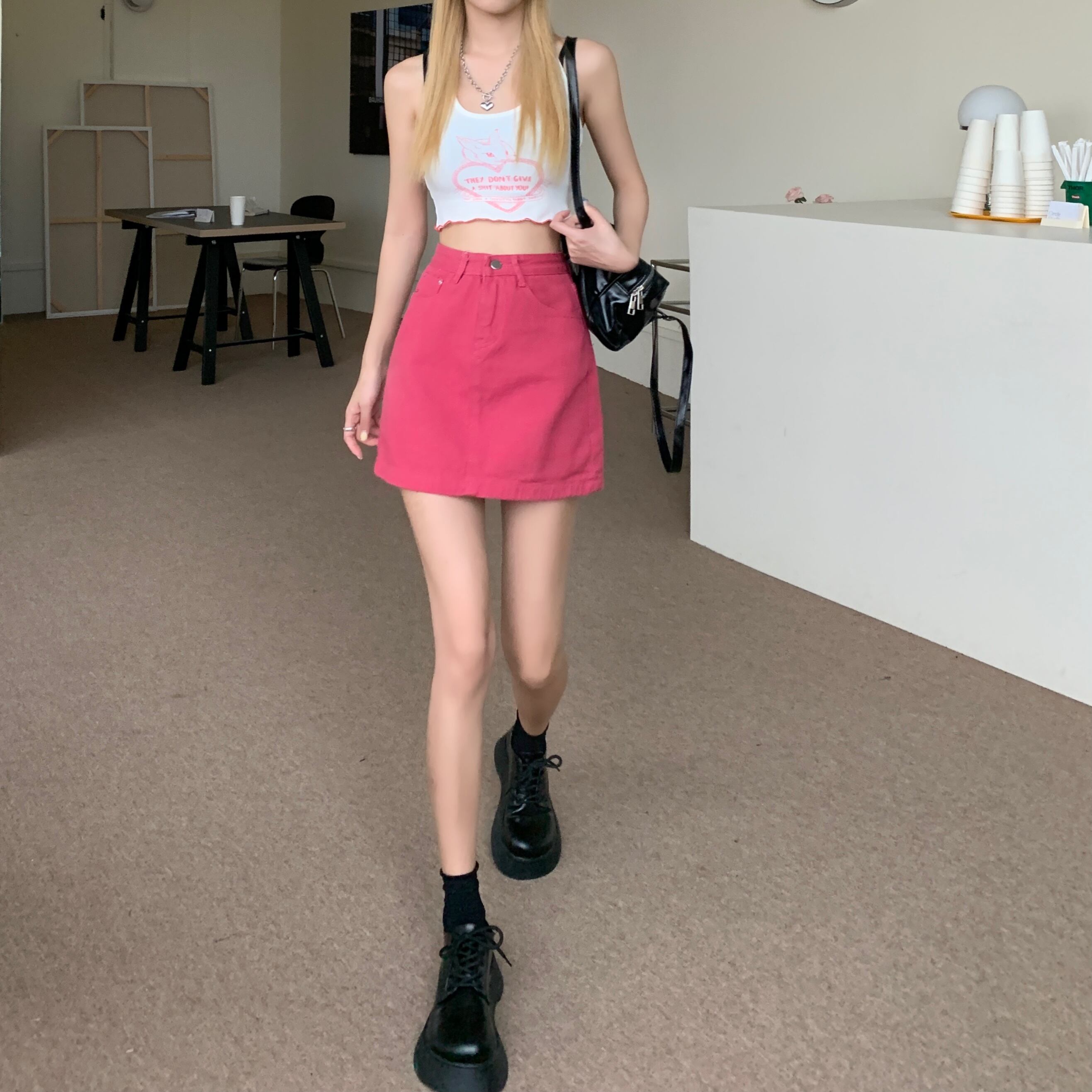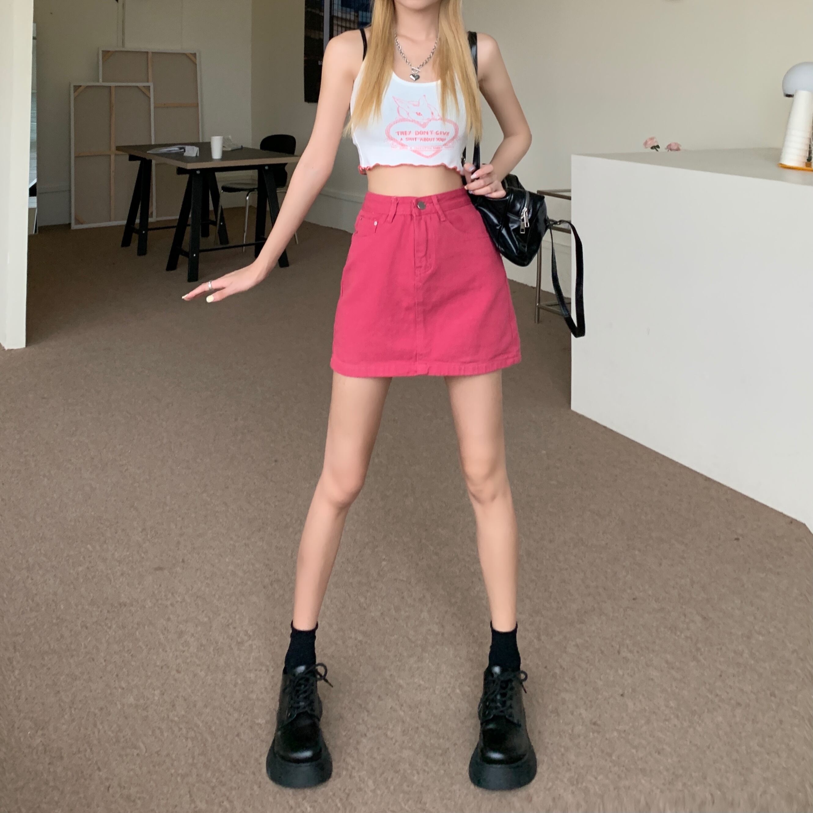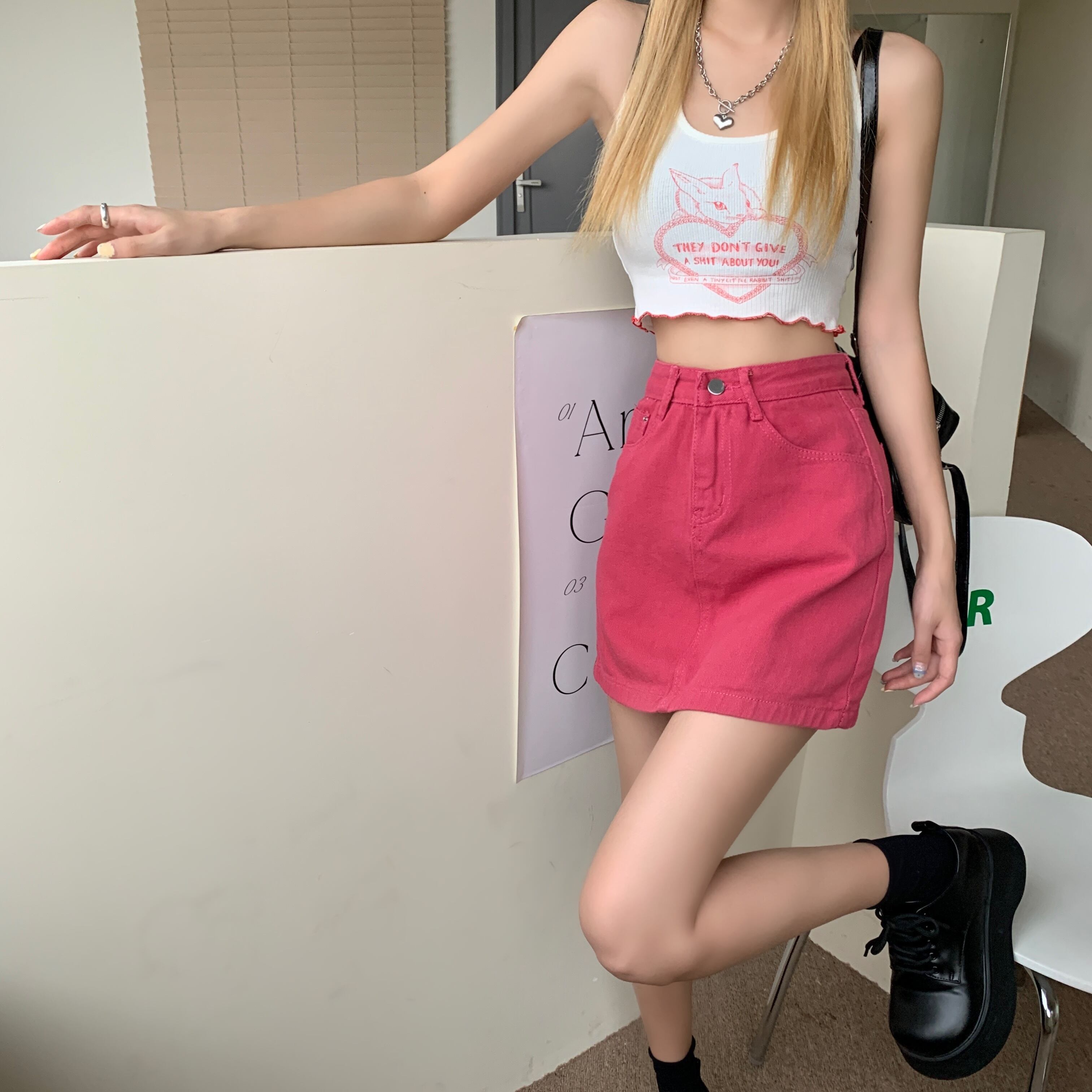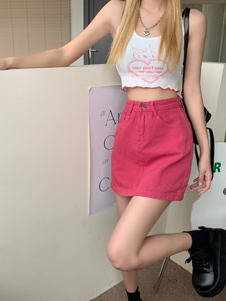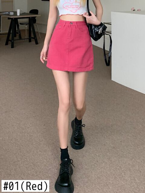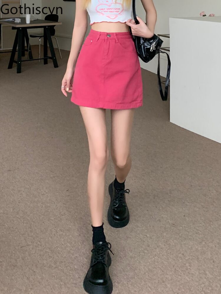 Gothiscyn デニム ミニスカート ローズ レッド サマー スタイル ゴシック スカート A ラインの女性服無地シックなレディ スカート 夏物 Aライン ソリッドカラー got35202571931