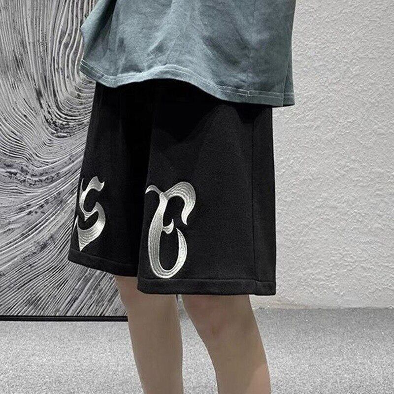 夏のメンズショーツ黒パンツウエストゴスパンクバギースウェットショーツストリート Y2k 弾性ウエストカーゴ男性ボトムス ブラック エラスティック 伸縮 サマー 夏物 ブルマー got61784573193
