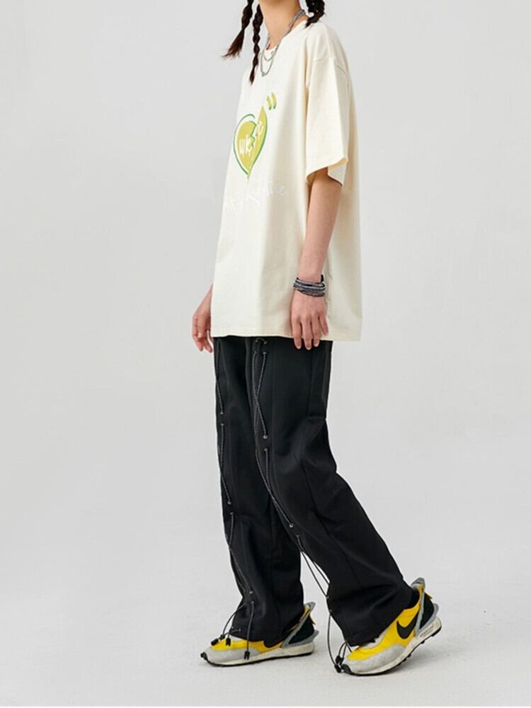 ストリートバギーパンツ女性服ボトムスワイドレッグパンツ貨物ズボン反射ロープゴスパンクパンツ ワイドパンツ got92486579482