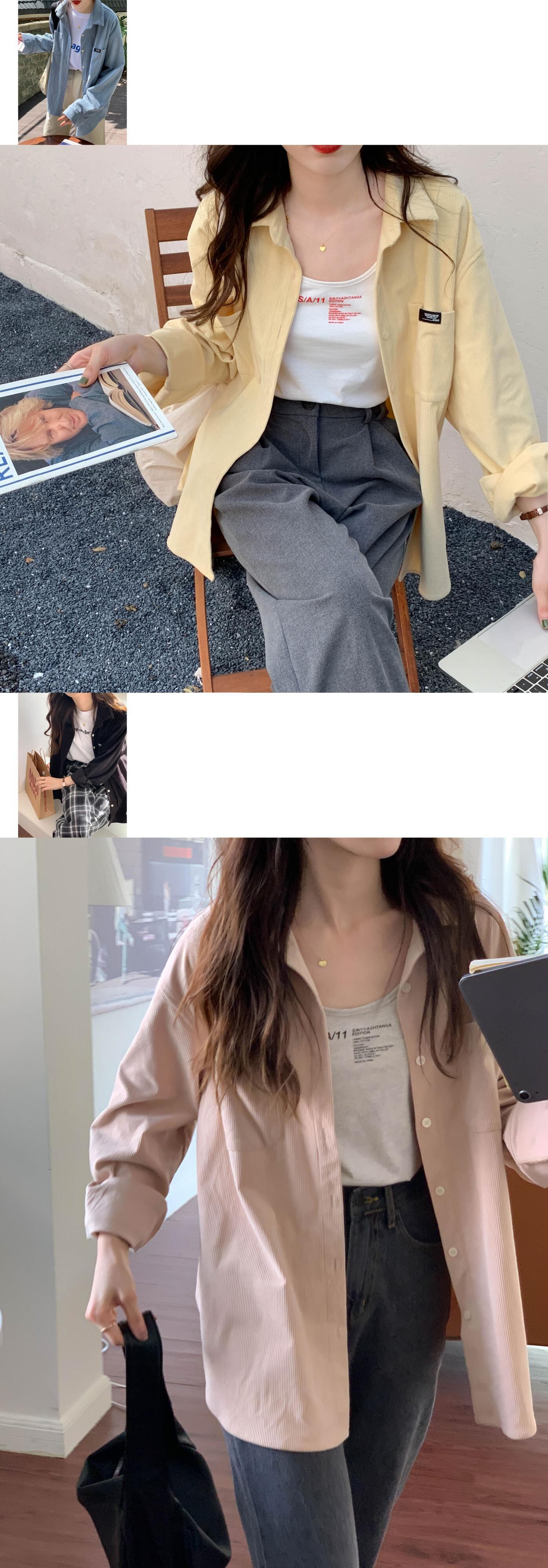 ブラウス コーデュロイ シャツ レディース ルーズ ミッドレングス Bf スタイル ロングスリーブ シャツ ジャケット 春 レトロ トップ 長袖 スプリング 春物 got13354531883