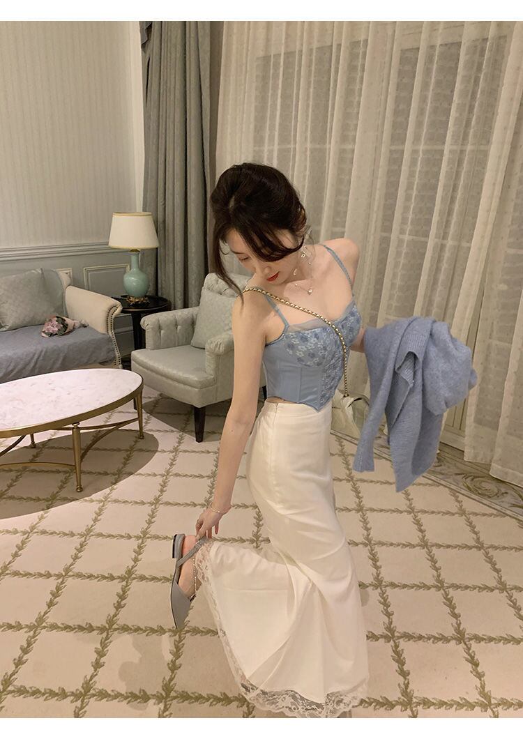 女性キャミソールブルーレースタンクスキニーホルターセクシーなトップかわいいトップス Y2k クロップトップの服の女性トレンディ 大人ガーリー スウィート キュート カジュアル got65501966534