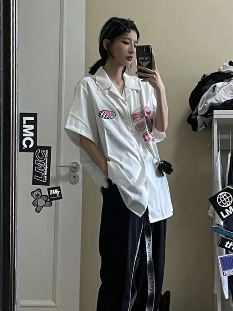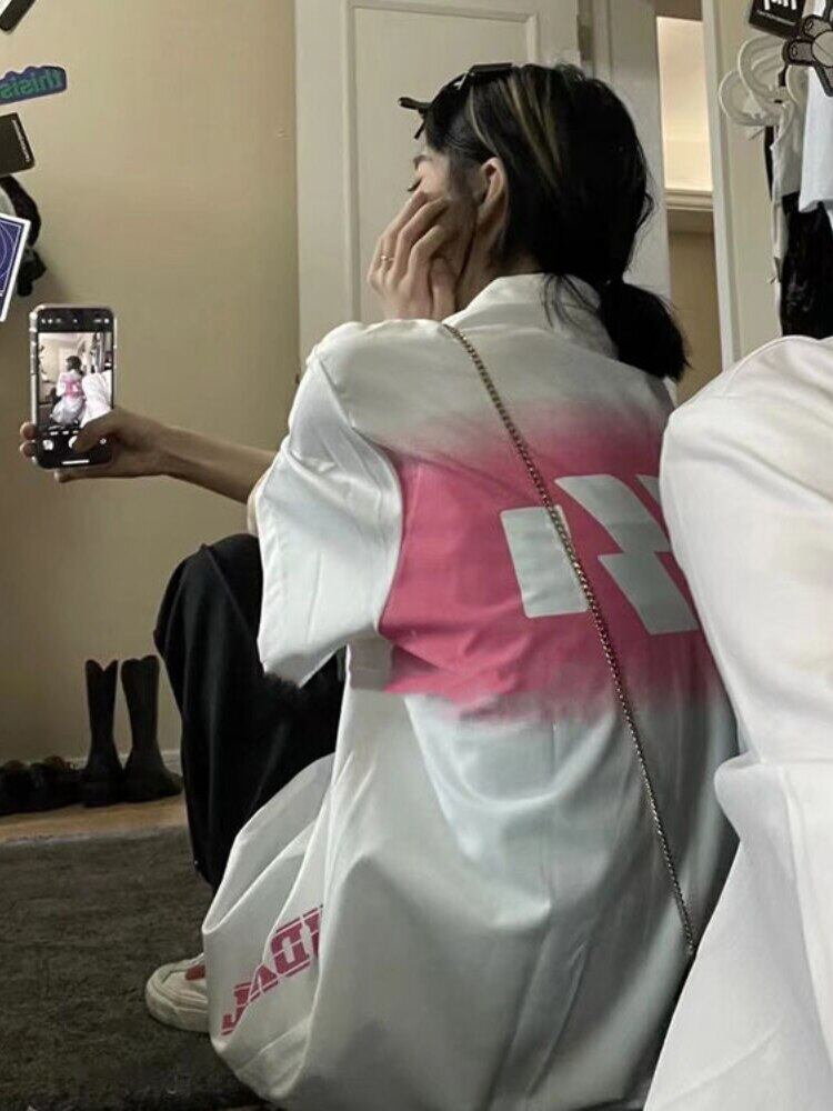 ese シャツピンク女性ブラウス夏半袖カーディガンパジャマ襟ゴスストリート原宿シャツ かわいい サマー 夏物 got74292890227
