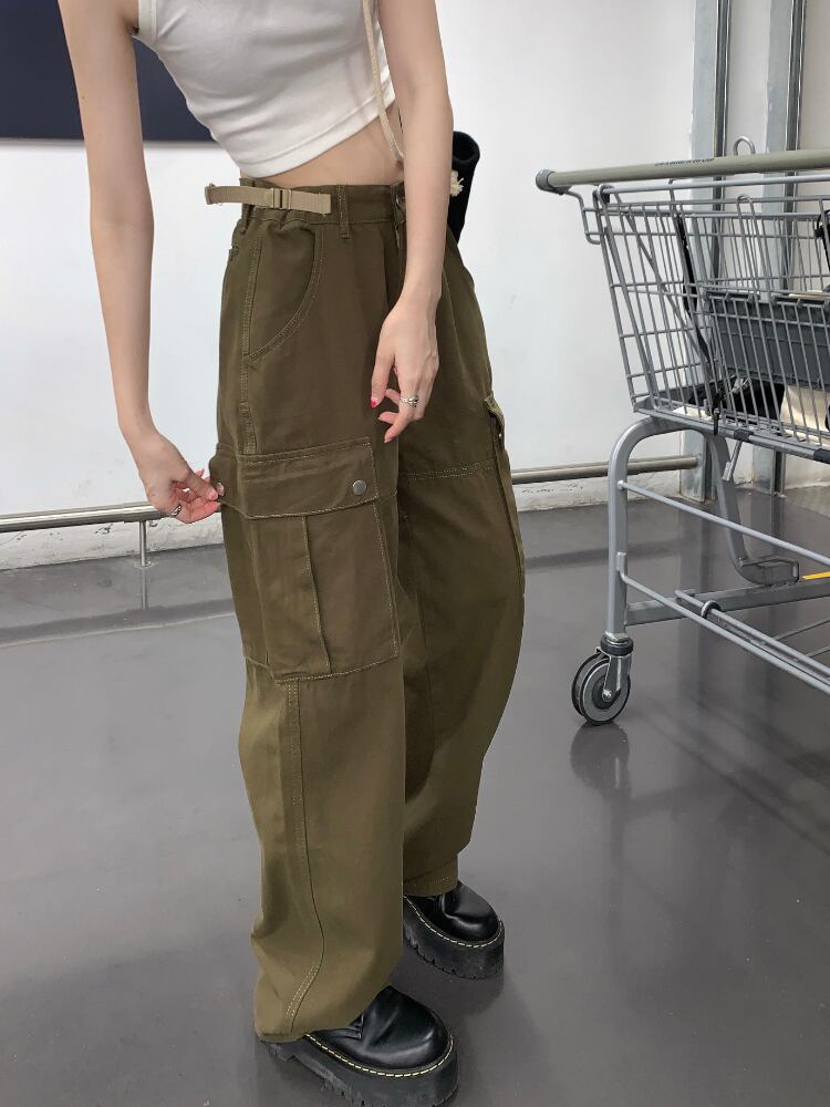 パンツ グリーン オーバーオール モッピング パンツ ホット ガール ウエスト ストレート レッグ パンツ 夏 ルーズ ワイドレッグ パンツ サマー 夏物 ワイドパンツ got86212874405