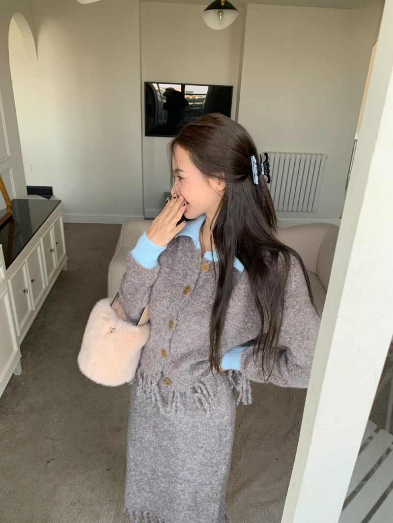 テルスーツレディースセーターショートコート秋冬バッグヒップスカートニットツーピースセット服 オータム 秋物 ウィンター 冬物 got57283357002