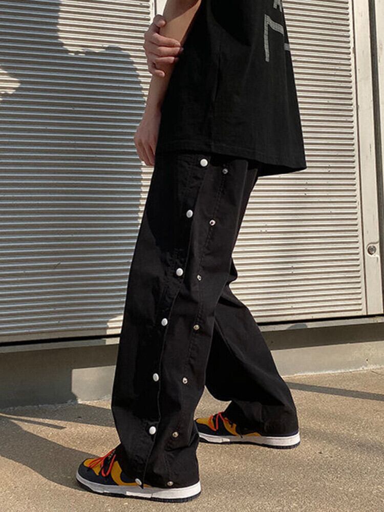 ゴスパンク男性パンツボタンアップバギーパンツ黒ウエストワイドレッグパンツストレートズボンだぶだぶヒップホップ貨物ボトム ブラック ワイドパンツ got10361912388