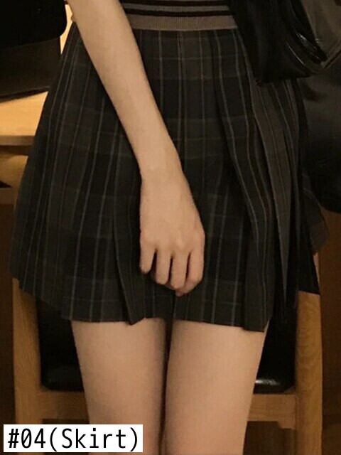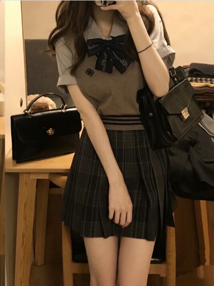 Gothiscyn 女性スーツプレッピースタイルプリーツスカートニットベストプリーツスカート JK スーツトレンド学生シック got19056625335