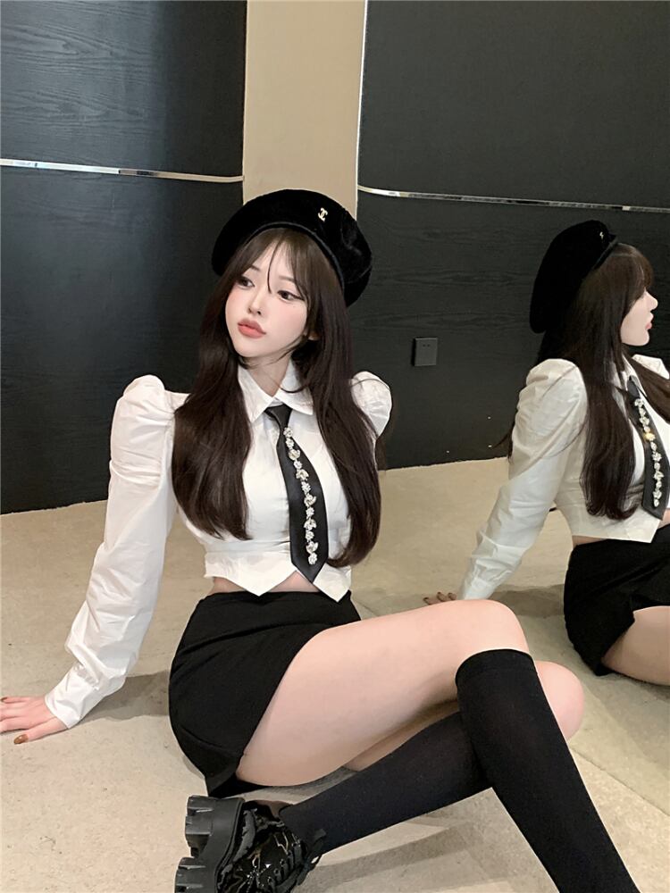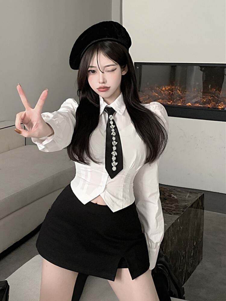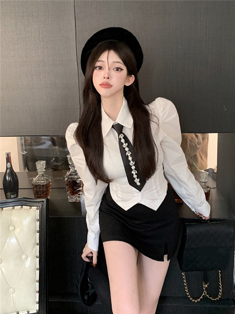 Gothiscyn ツーピースドレスセットスーツ春夏タイボタンアップシャツウエストミニスカート Y2k スーツ スプリング 春物 サマー 夏物 got91029327371