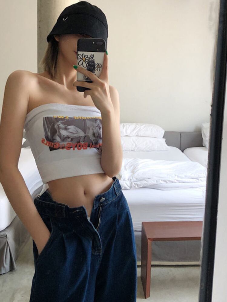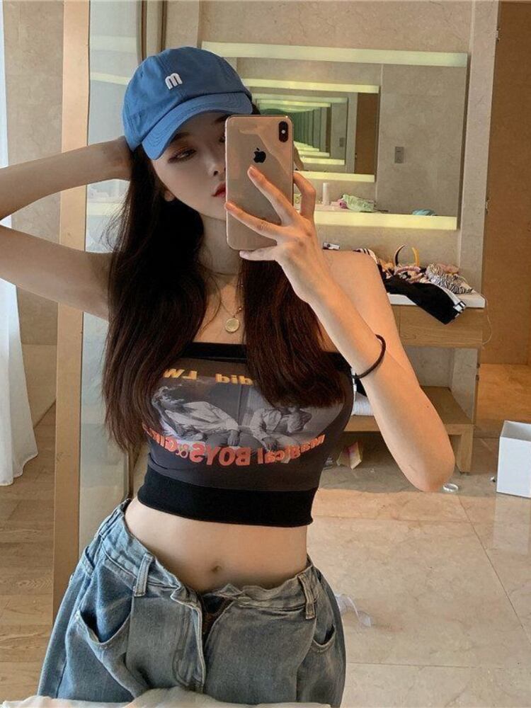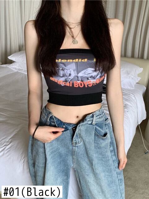 セクシーなチューブトップ女性の夏のスキニー黒作物ベビー Tシャツ Y2k キャミソールレディースビスチェブラジャータンクストリート ブラック サマー 夏物 got54888433427