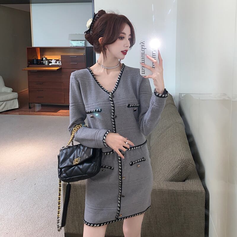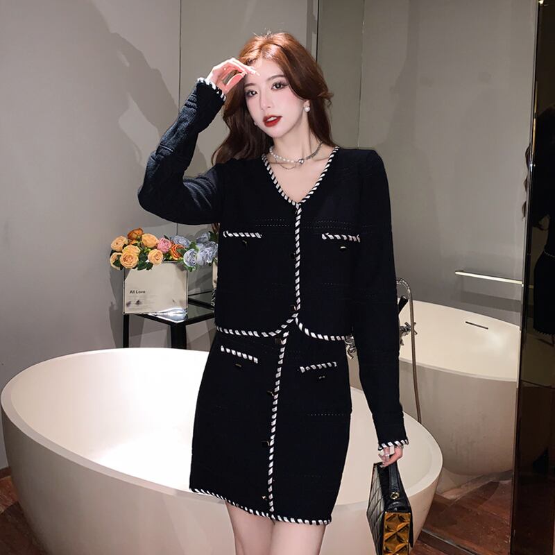 Gothiscyn ツーピースセットレディース衣装フレンチニットトップミニスカート無地梨花服秋/冬スカートセット オータム 秋物 ウィンター 冬物 ソリッドカラー got24764885051